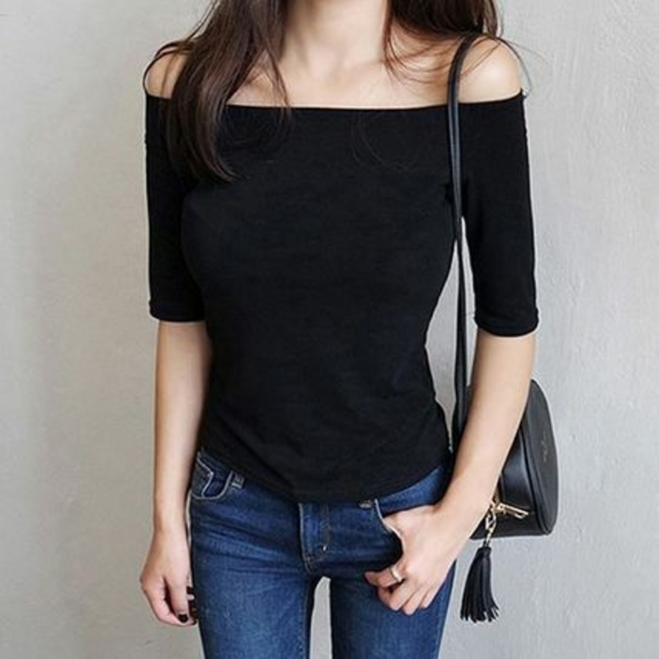 オフショルダー ボートネック 半袖 トップス きれいめ シンプル 無地 モノトーン 春 夏 コットン MH0968