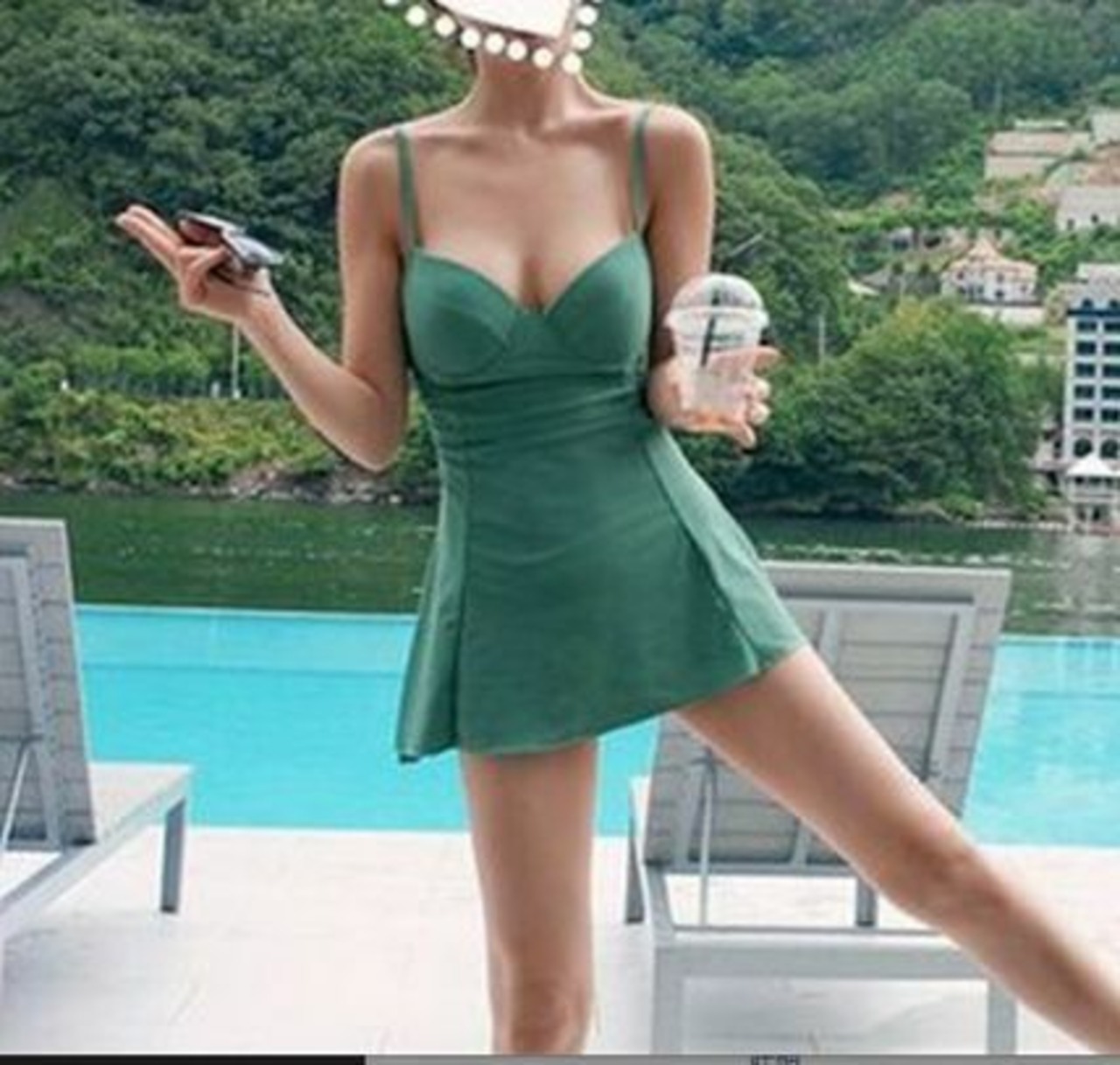 フェミニン ワンピース水着 フレア モノトーン 体型カバー 水着 ビーチ 海 リゾート プール MH0971