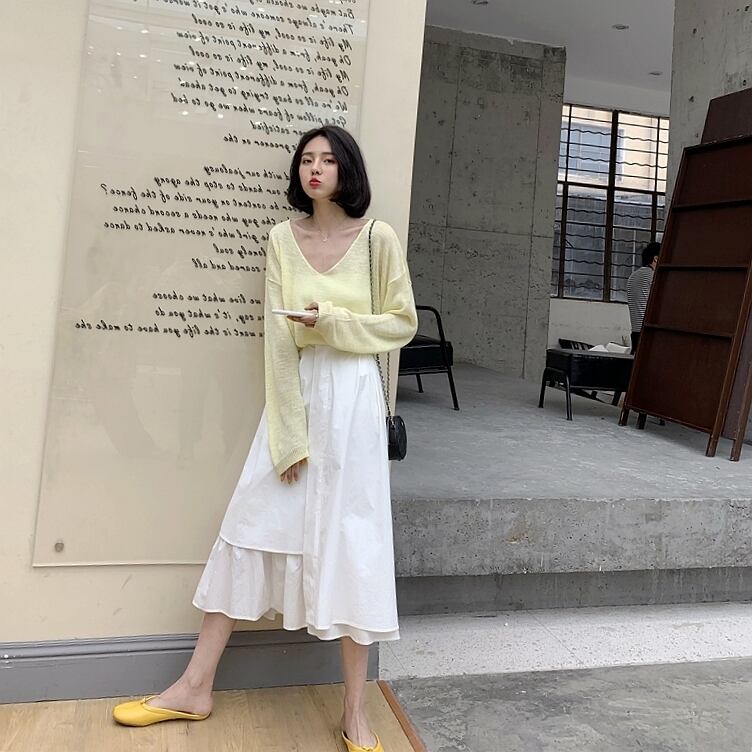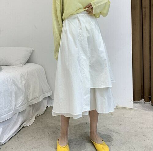 スカート レディース ロング丈 ロングスカート ミディ丈 ハイウエスト 無地 モノトーン アシンメトリー 黒 白 フレア シック ガーリー yi899