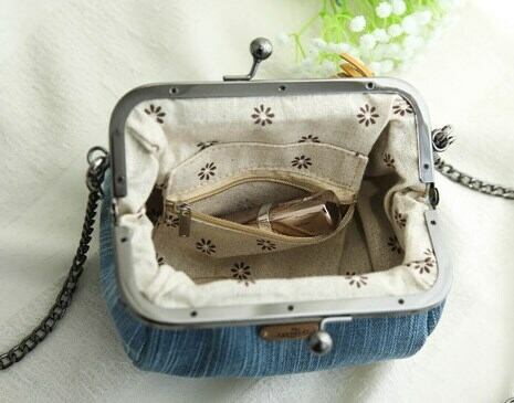 ショルダーバッグ バッグ がま口 デニム チェーン レディース カジュアル コンパクト シーズンレス ネイビー ab1248