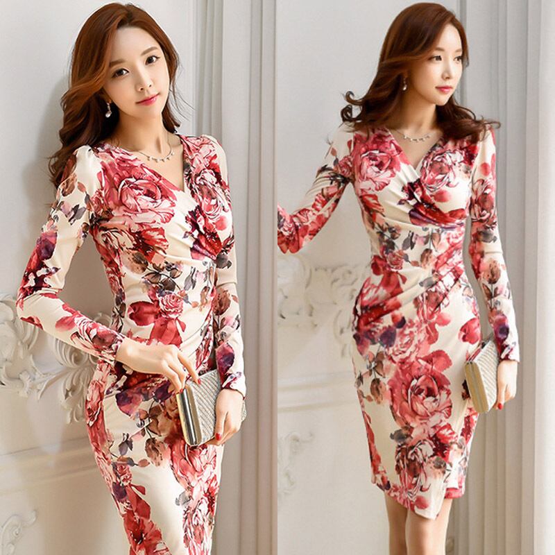 タイトワンピース ラップワンピース ワンピース 長袖 タイト 花柄 春 スリム スリムフィット パーティー 二次会 MH1025
