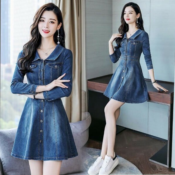 デニムワンピース ワンピース Aライン フロントボタン シャツワンピース ガーリー フェミニン お出かけ デート MH1060