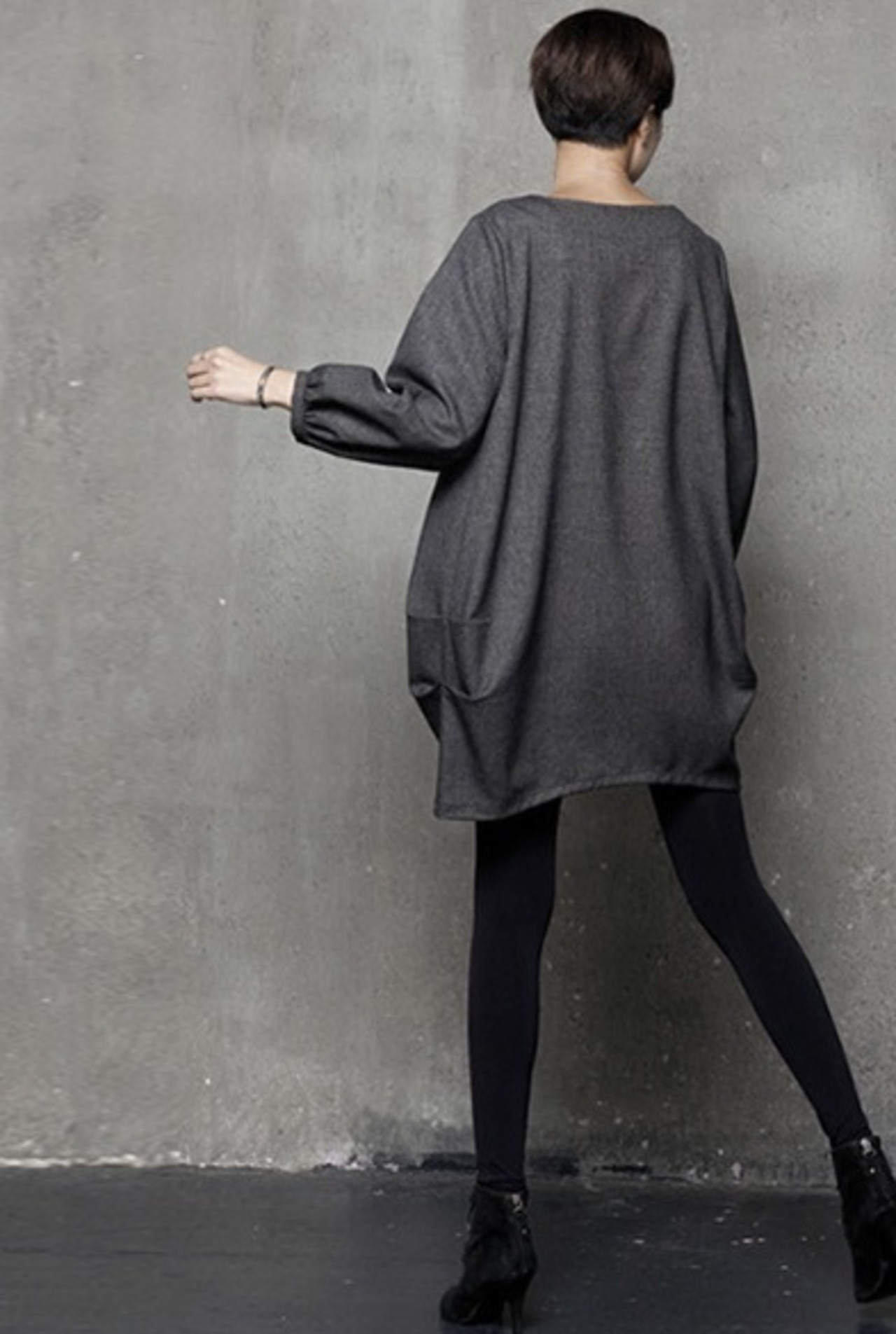 チュニック ワンピース ランタンスリーブ ボリューム袖 体型カバー ゆったり ママコーデ ママファッション MH1105