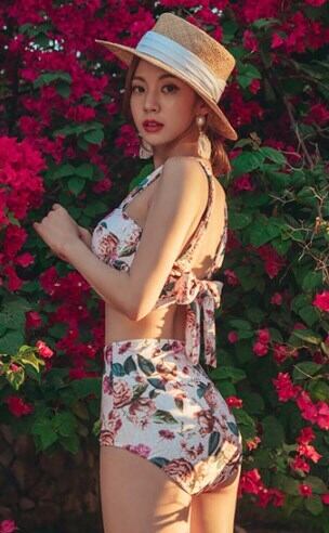 水着 タンキニ ビキニ レディース ハイウエスト 花柄 バックリボン フェミニン ビーチ 体型カバー ab1301
