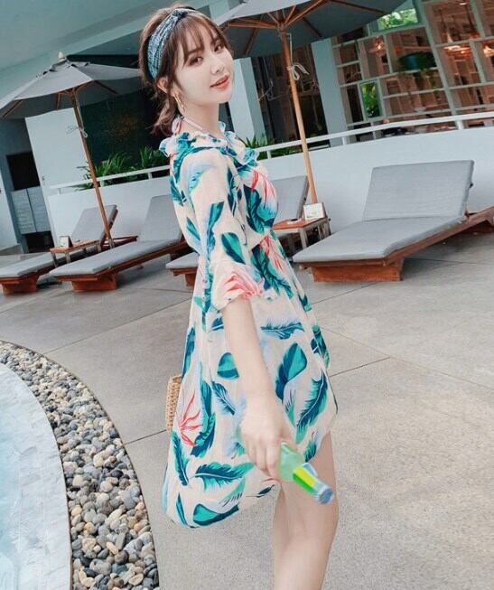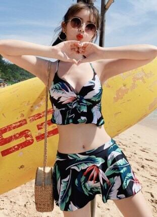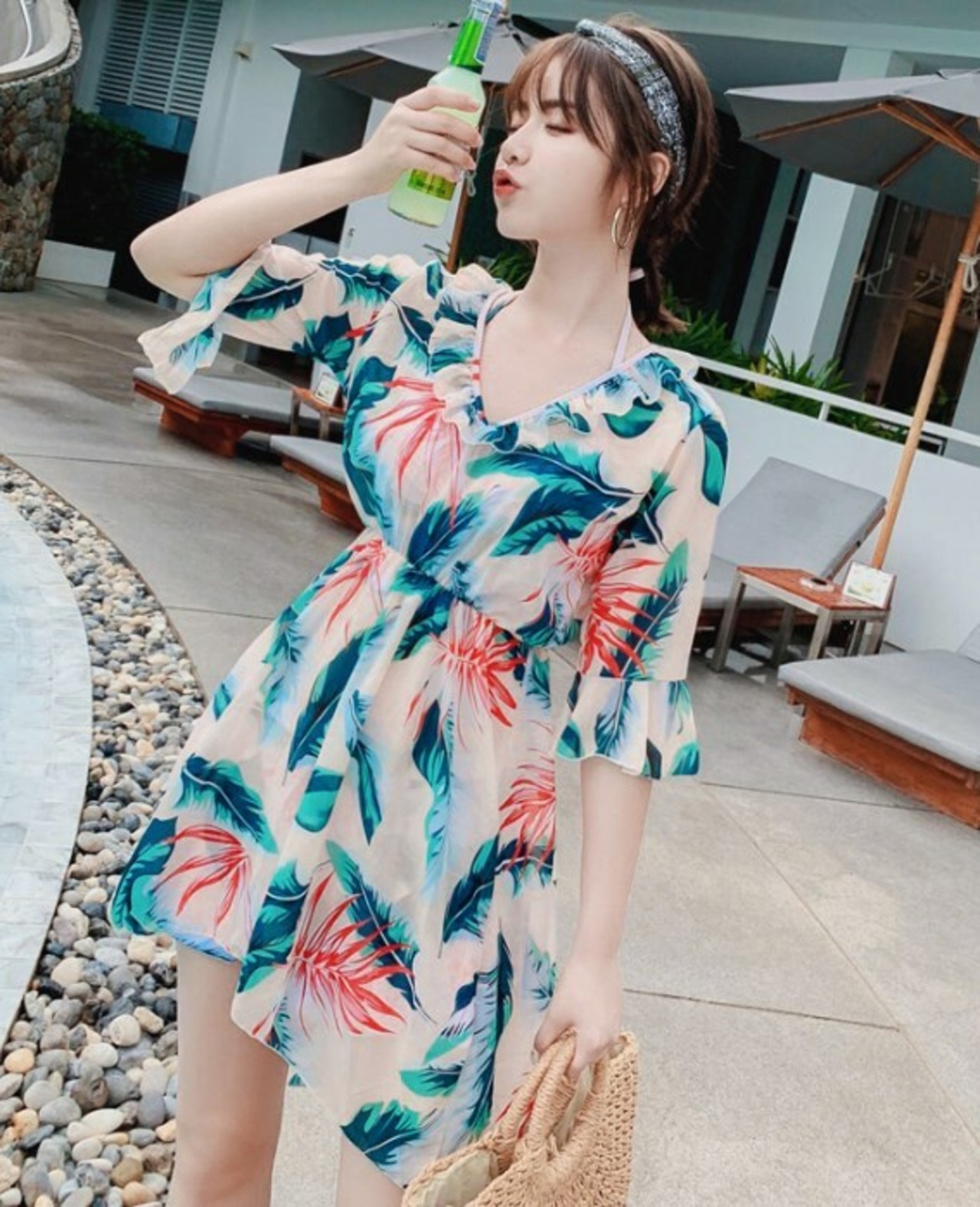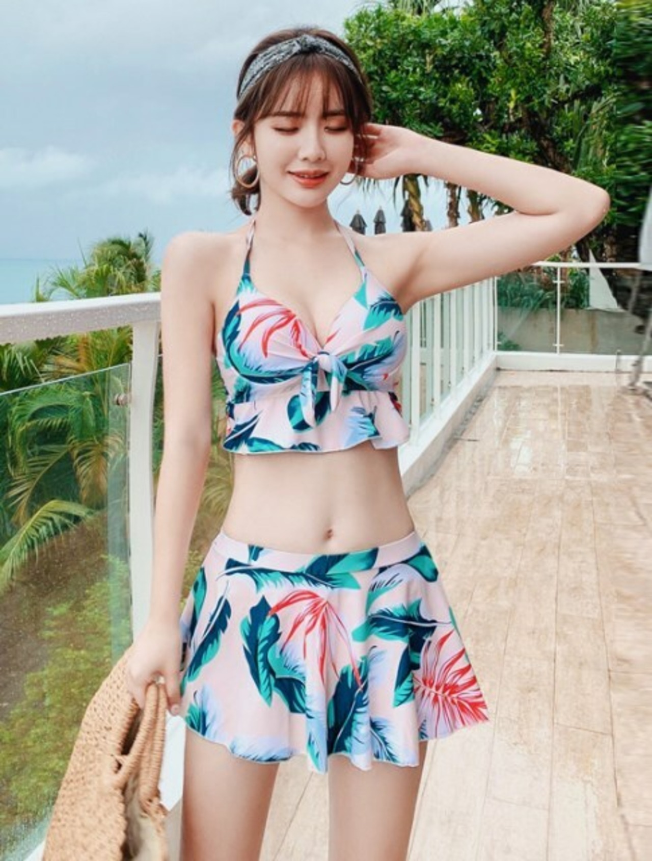 水着 ビキニ ビスチェ 3点セット ワンピース ボタニカル フリル レディース フレア 体型カバー 大きいサイズ ab1314