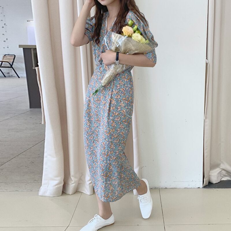 ワンピース ロング丈 ロングワンピース 花柄 半袖 リゾート 夏 大人かわいい ガーリー yi972
