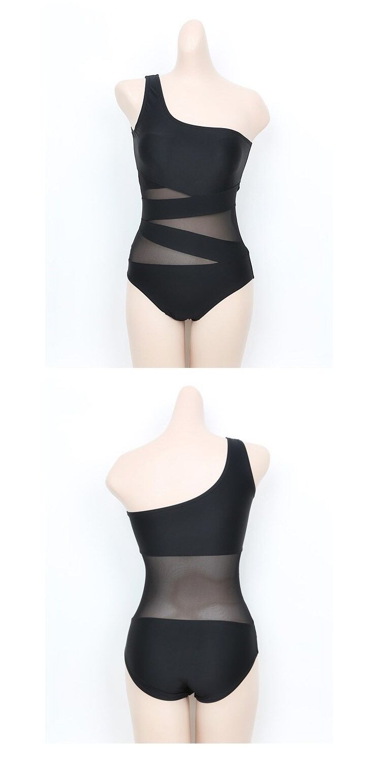 ワンショルダー ワンピース水着 ブラック 透け感 シースルー 水着 クール セクシー 大人可愛い 夏 ビーチ ナイトプール MH1273