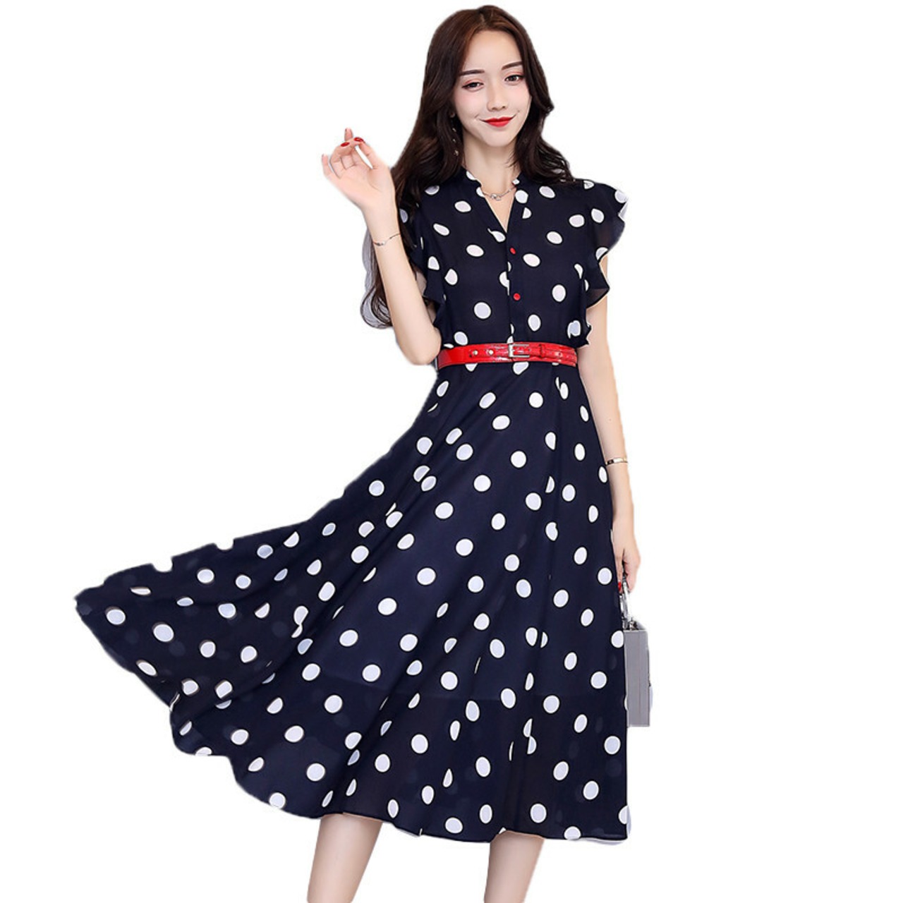 フリルドットワンピース フリル 水玉 ミモレ丈 ノースリーブ シフォンワンピース ワンピース フェミニン きれいめ 大人可愛い MH1231