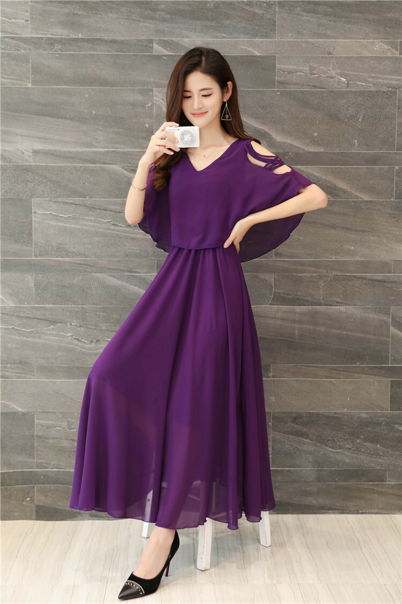 シフォンワンピース ワンピース ロング丈 ロングワンピース 大きいサイズ 肩出し サイズ豊富 ゆったり ママコーデ ママファッション お呼ばれ MH1368