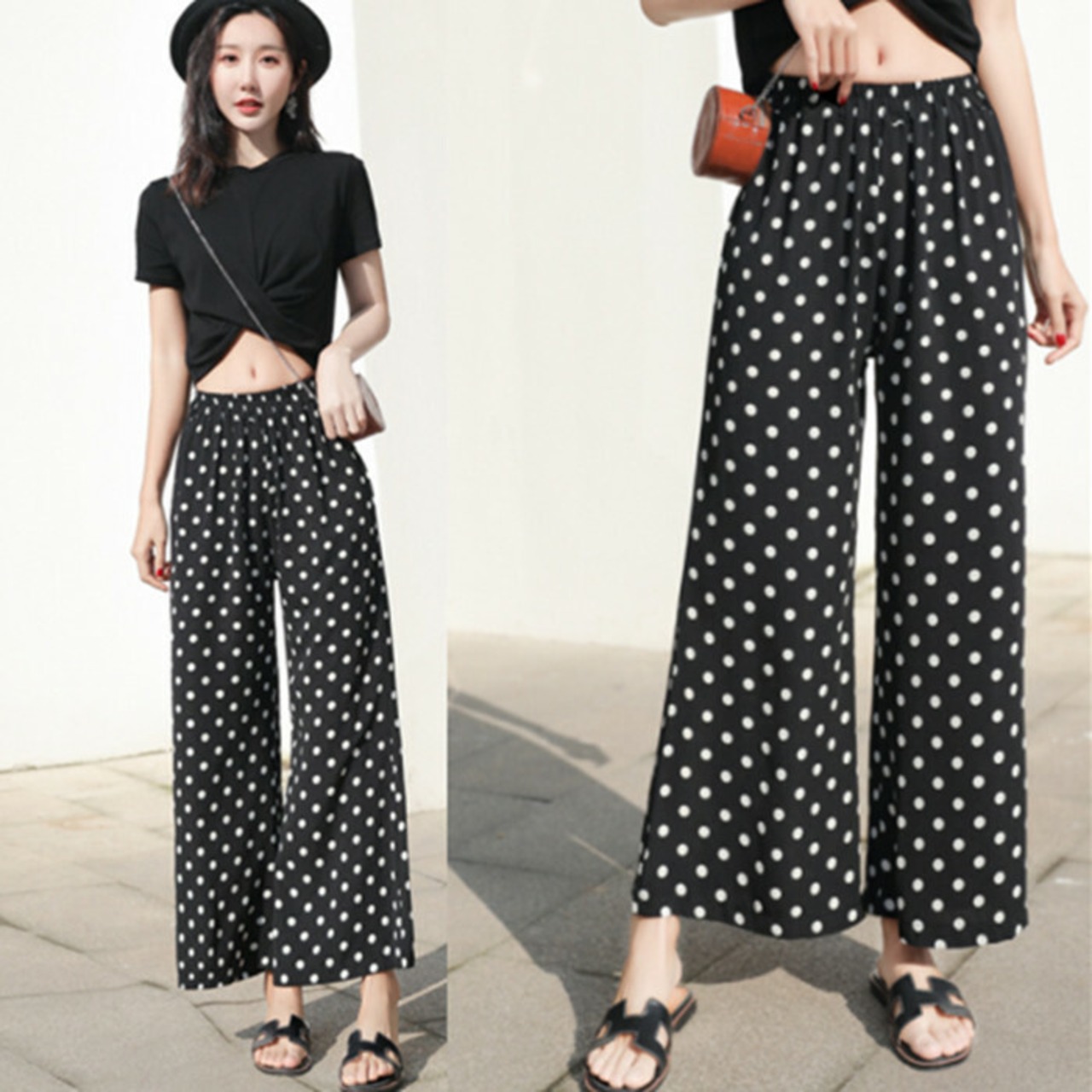 ワイドパンツ ガウチョパンツ ボトムス ドット柄 水玉 ゆるカワ 楽チン カジュアル ガーリー 大人可愛い ママファッション ママコーデ MH1420