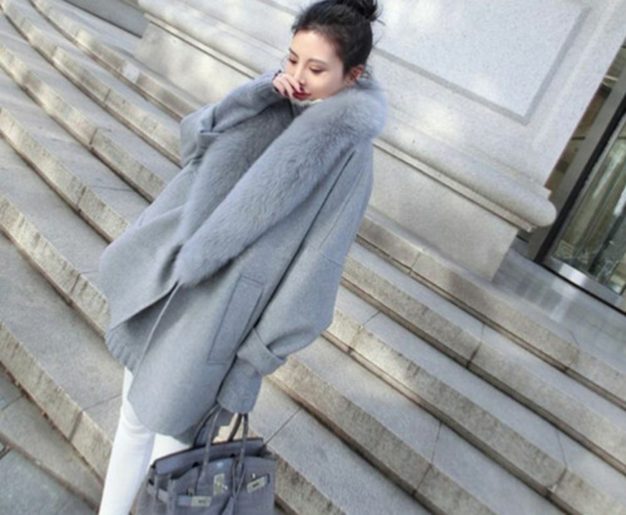 コート アウター ロングコート 無地 ゆったり ファー ウール ボリューム袖 きれいめ 大人 通勤 オフィス エレガント 秋冬 yi1028