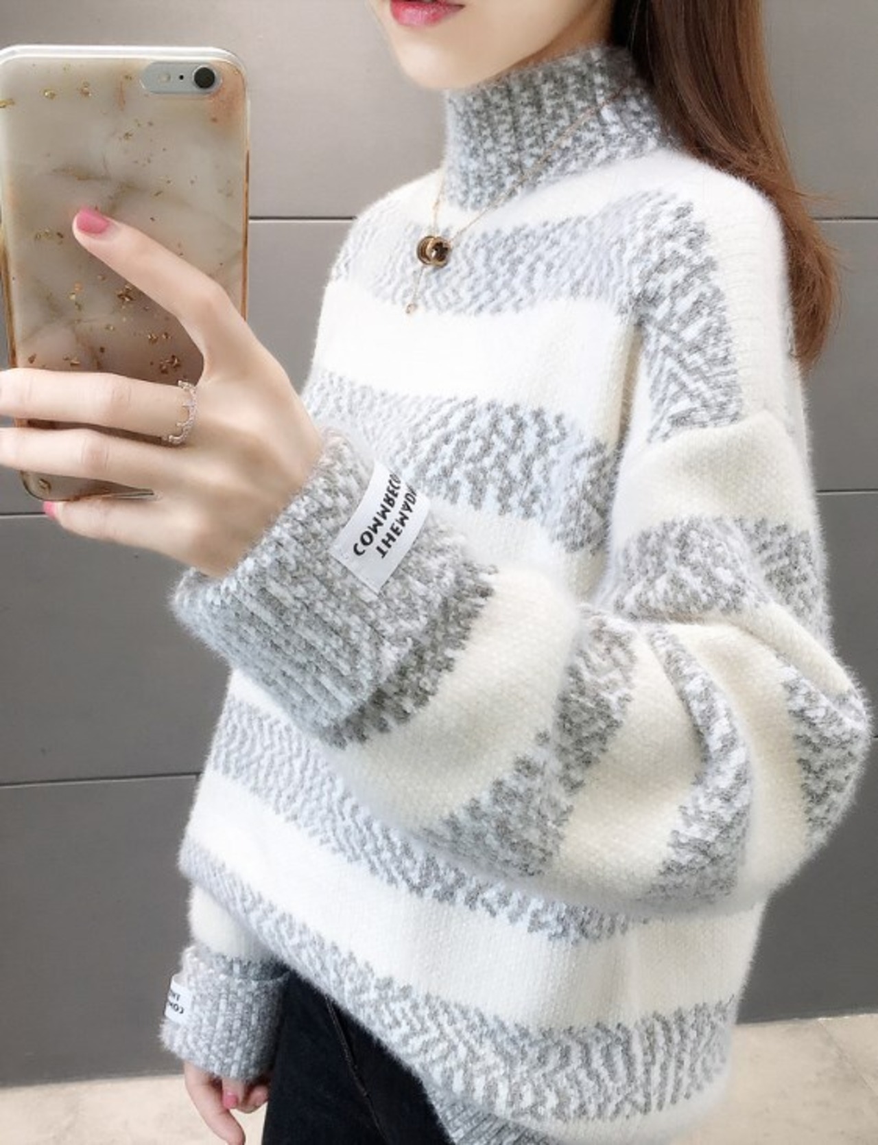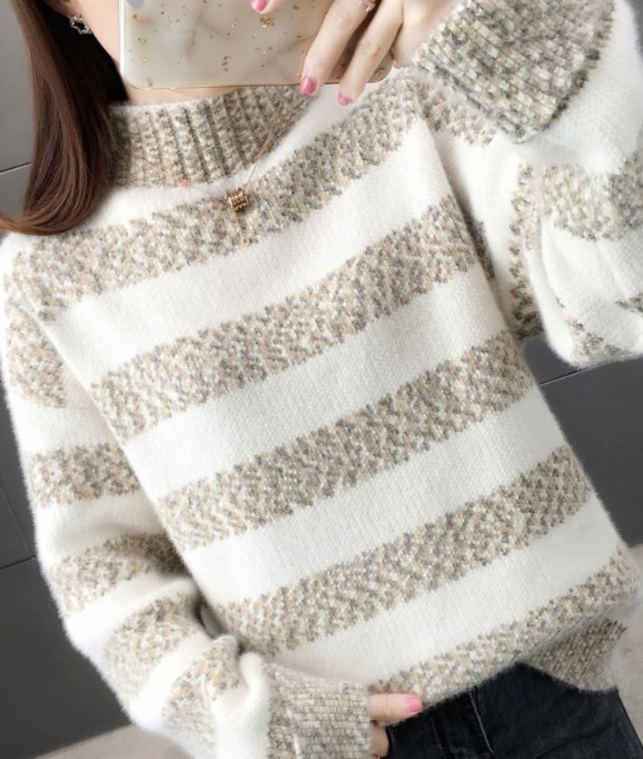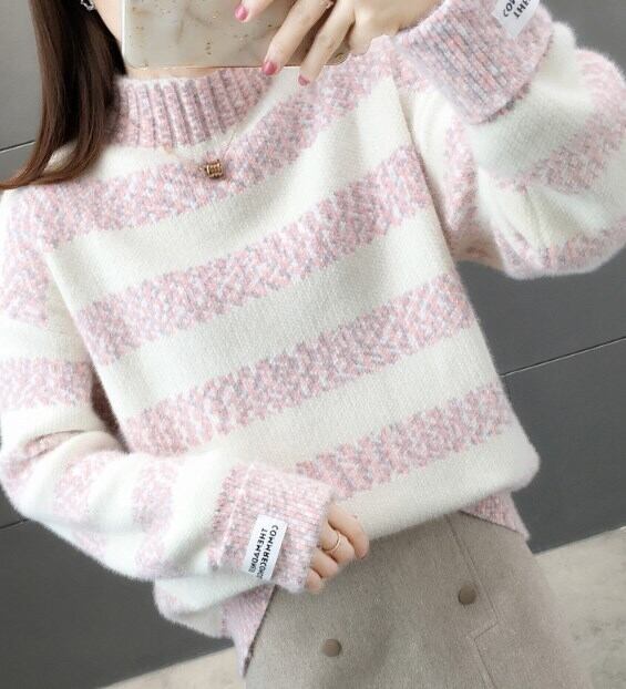 セーター ニット レディース プルオーバー 秋冬 ボーダー ストライプ ハイネック ab1505