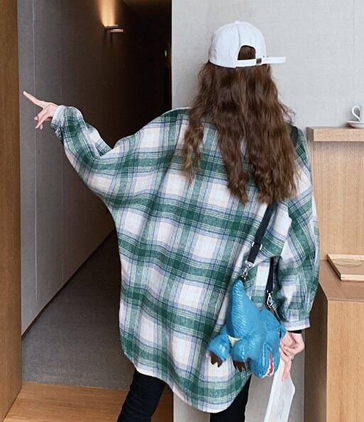 シャツ シャツジャケット シャツワンピ レディース 大きいサイズ チェック 格子柄 ゆったり 長袖 グリーン ab1539