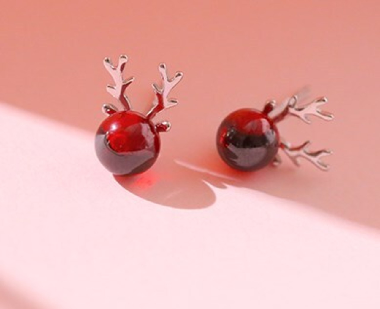 ピアス レディース ガーネット トナカイ クリスマス 秋冬 キュート プレゼント ab1547
