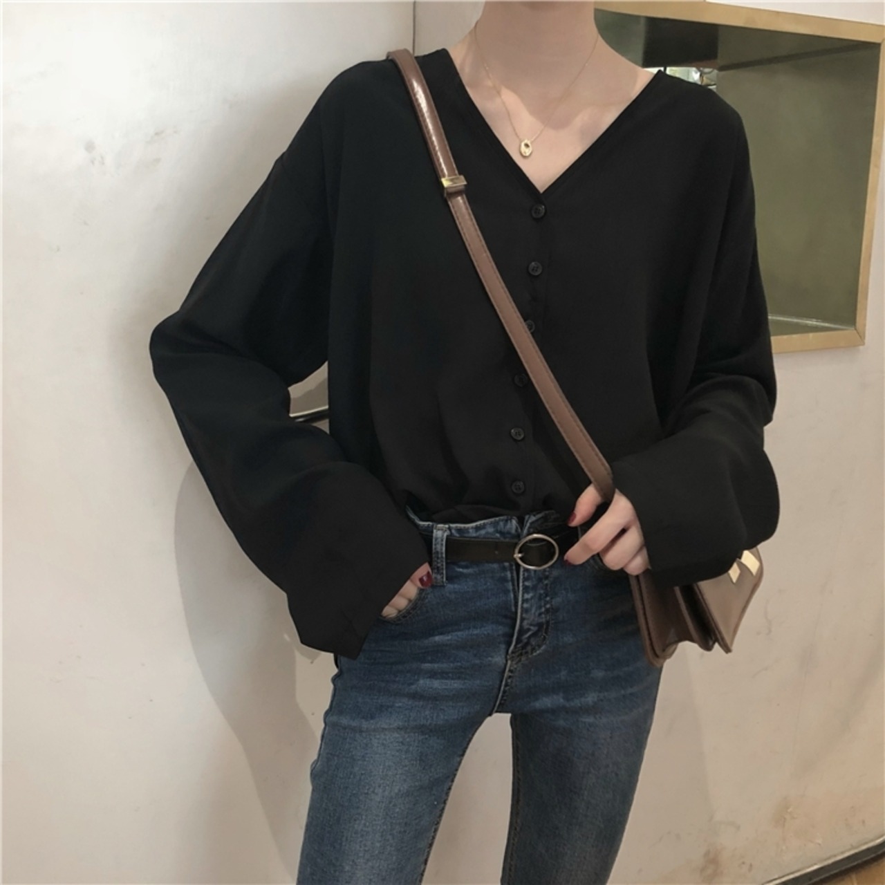Vネックシフォンブラウス Vネック シンプル 無地 通勤 ママコーデ 大人コーデ カジュアル きれいめ MH1695
