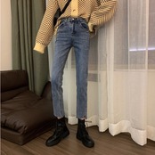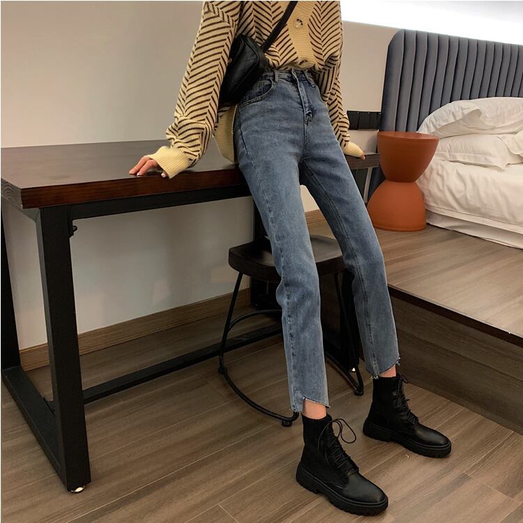 ストレートデニムパンツ ジーパン ジーンズ デニム 切りっぱなし カジュアル 細身 脚長効果 ママコーデ お出かけ MH1696