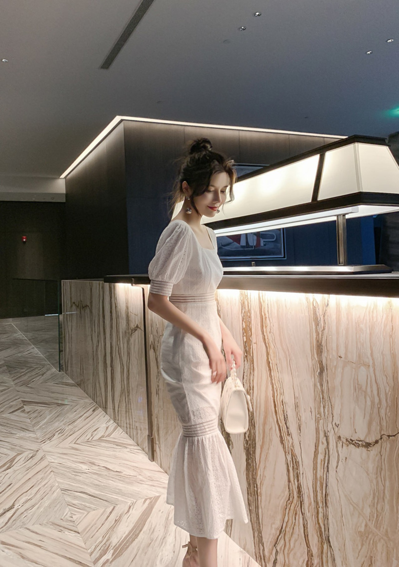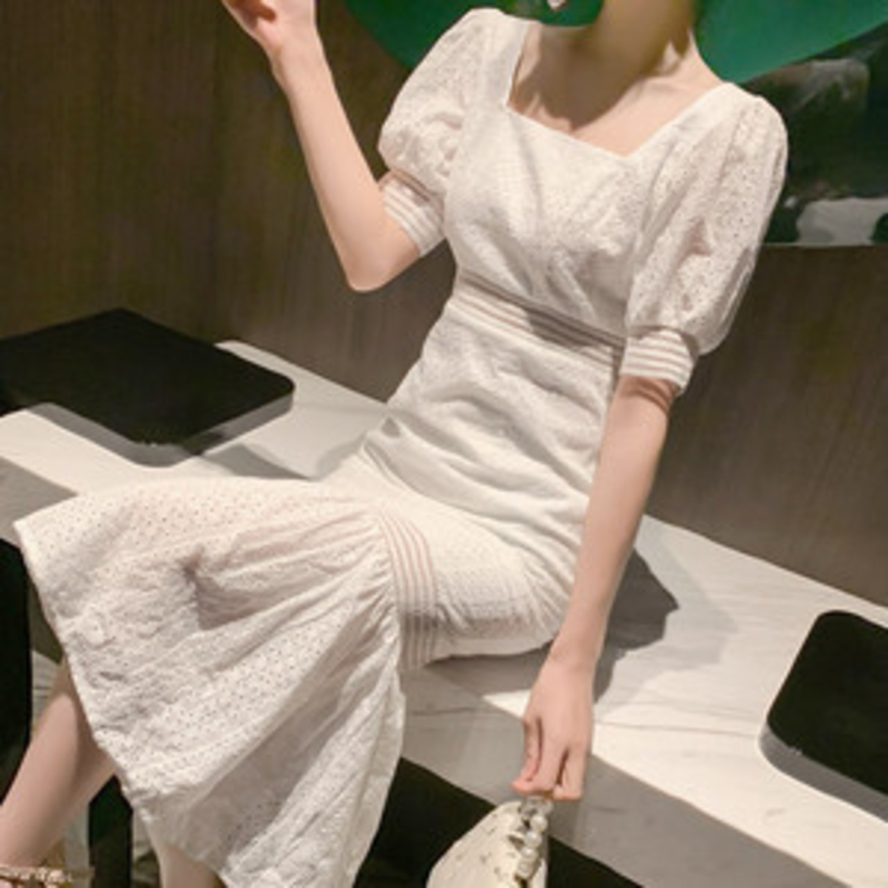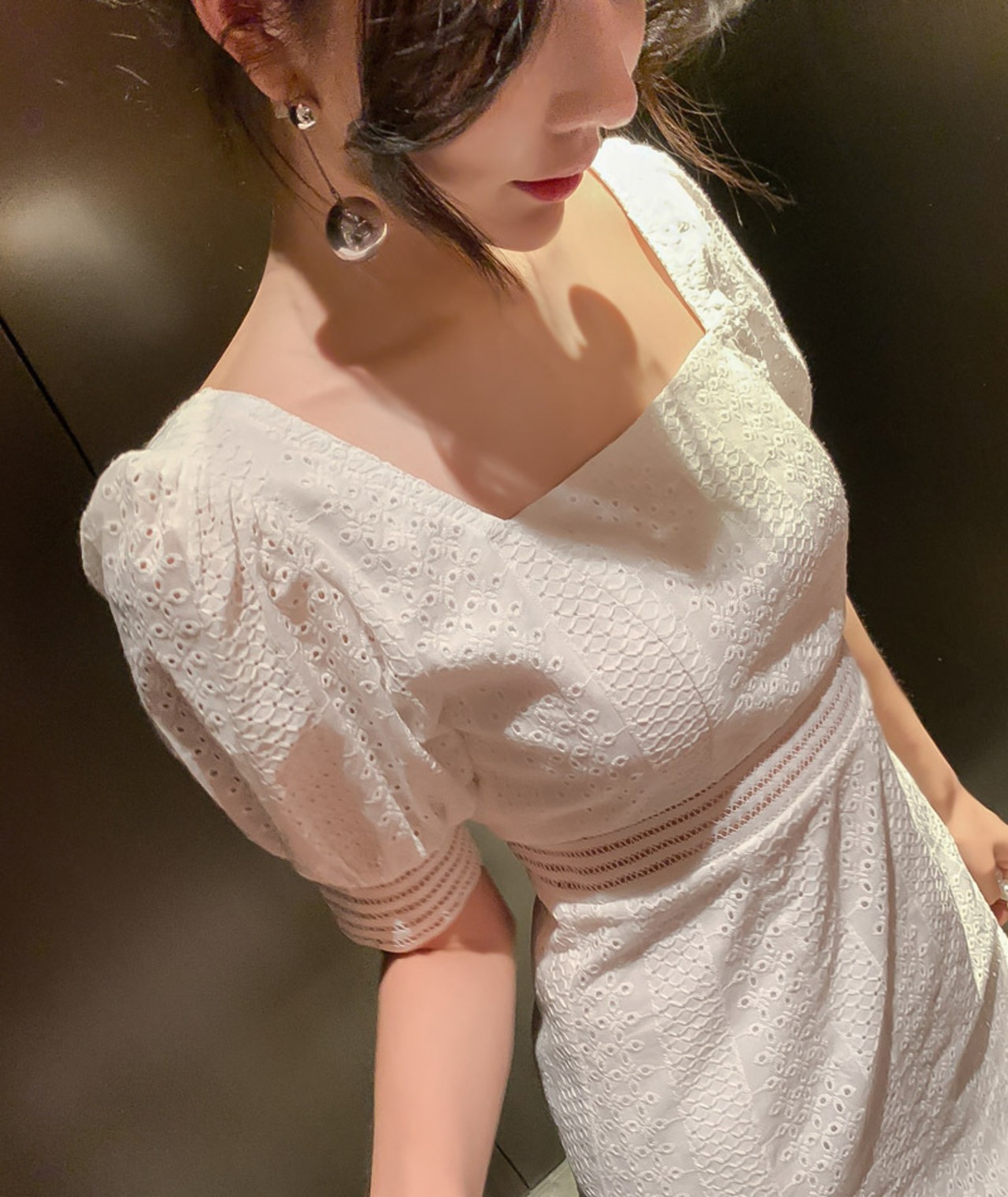 パンチングレースワンピース 半袖 ロング丈 ホワイト 清楚 きれいめ デート お呼ばれ パーティー 二次会 夏 MH1721