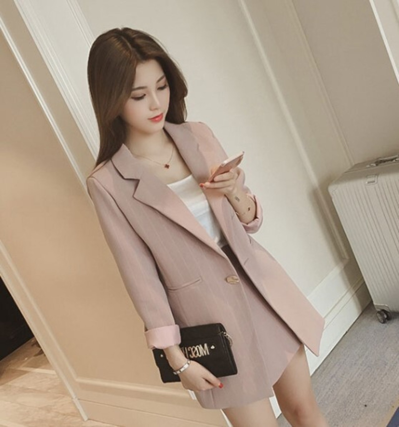 ショートスーツ レディース ショート丈 春夏 ロングジャケット スーツ セットアップ オフィス 長袖 ピンク ab1621