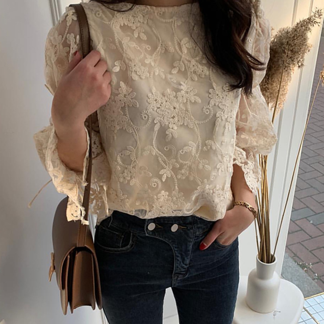 花模様で女性らしさの雰囲気のあるレースブラウスです。