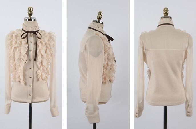 フリルブラウス シャツ ブラウス フリル 長袖 リボン 透け感 通勤 OL オフィス セクシー デート お出かけ 春 夏 MH1737