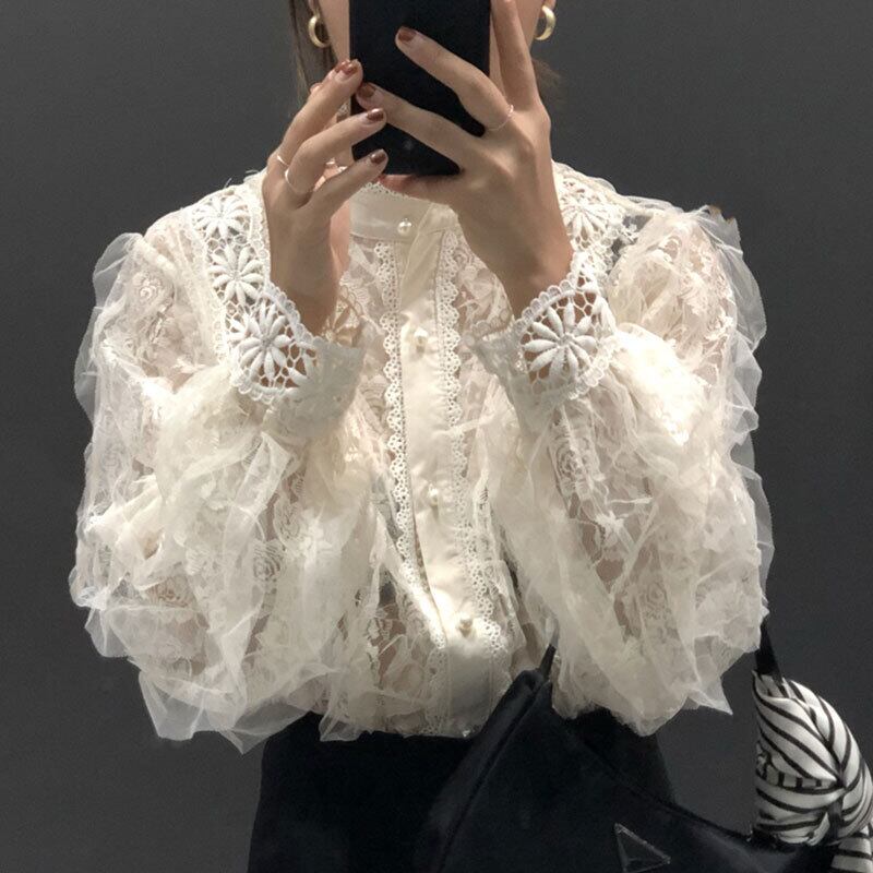 フラワーレースブラウス 透け感 レース おしゃれ 通勤 OLセクシー デート お呼ばれ 春 夏 MH1738