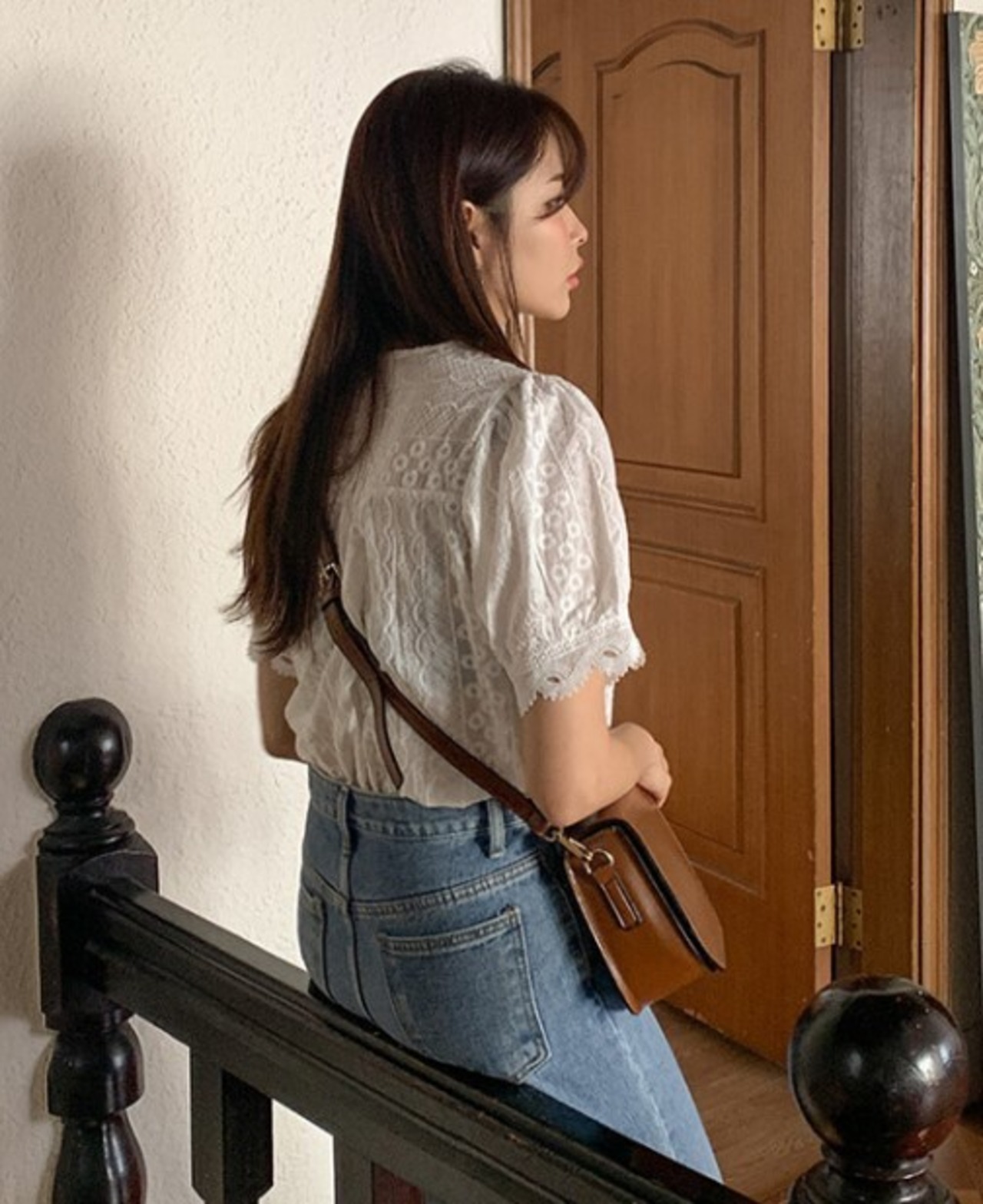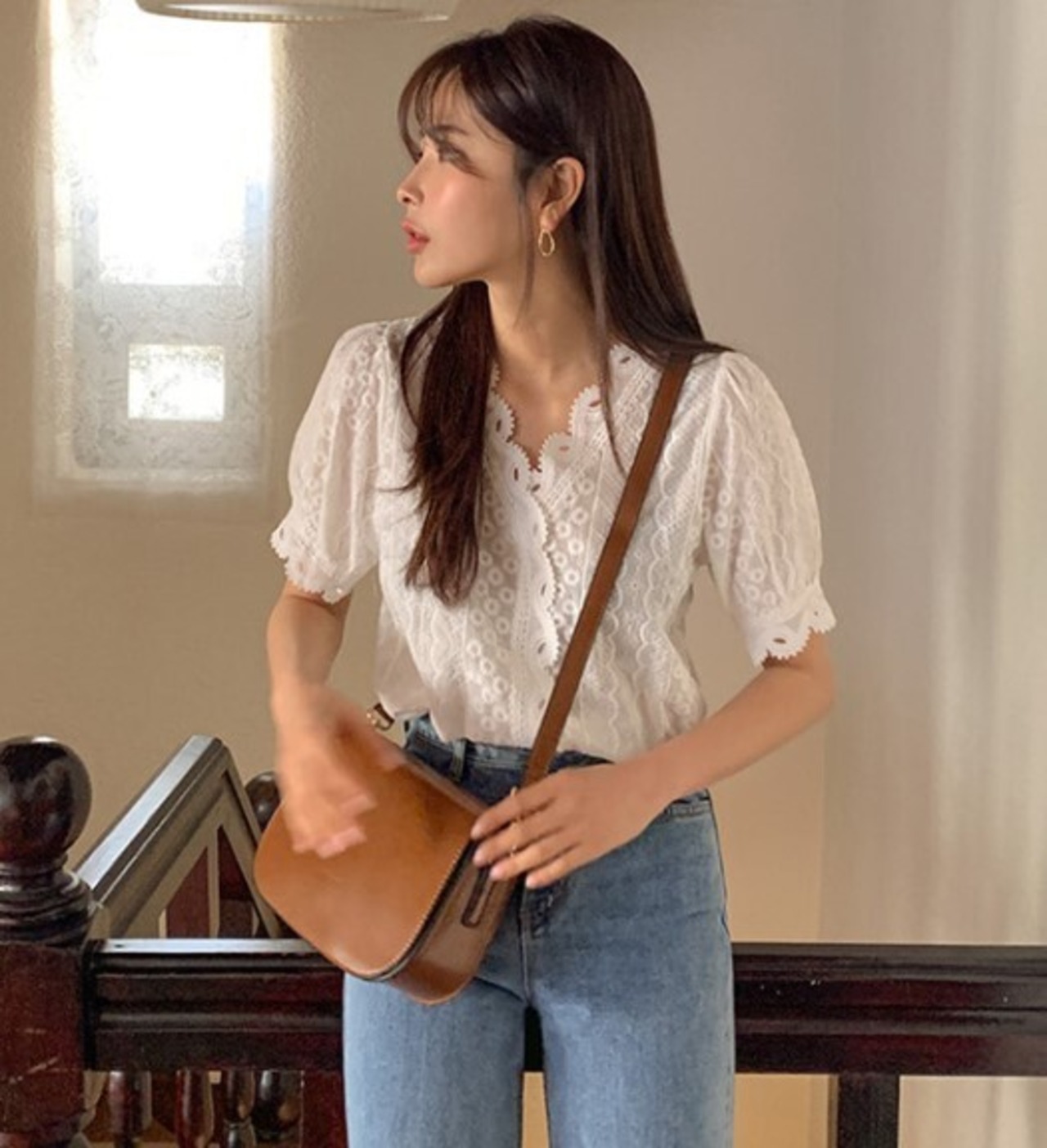 シャツ ブラウス トップス レディース 春夏 レース 透け感 フリル Vネック 半袖 ガーリー 無地 レトロ ab1679