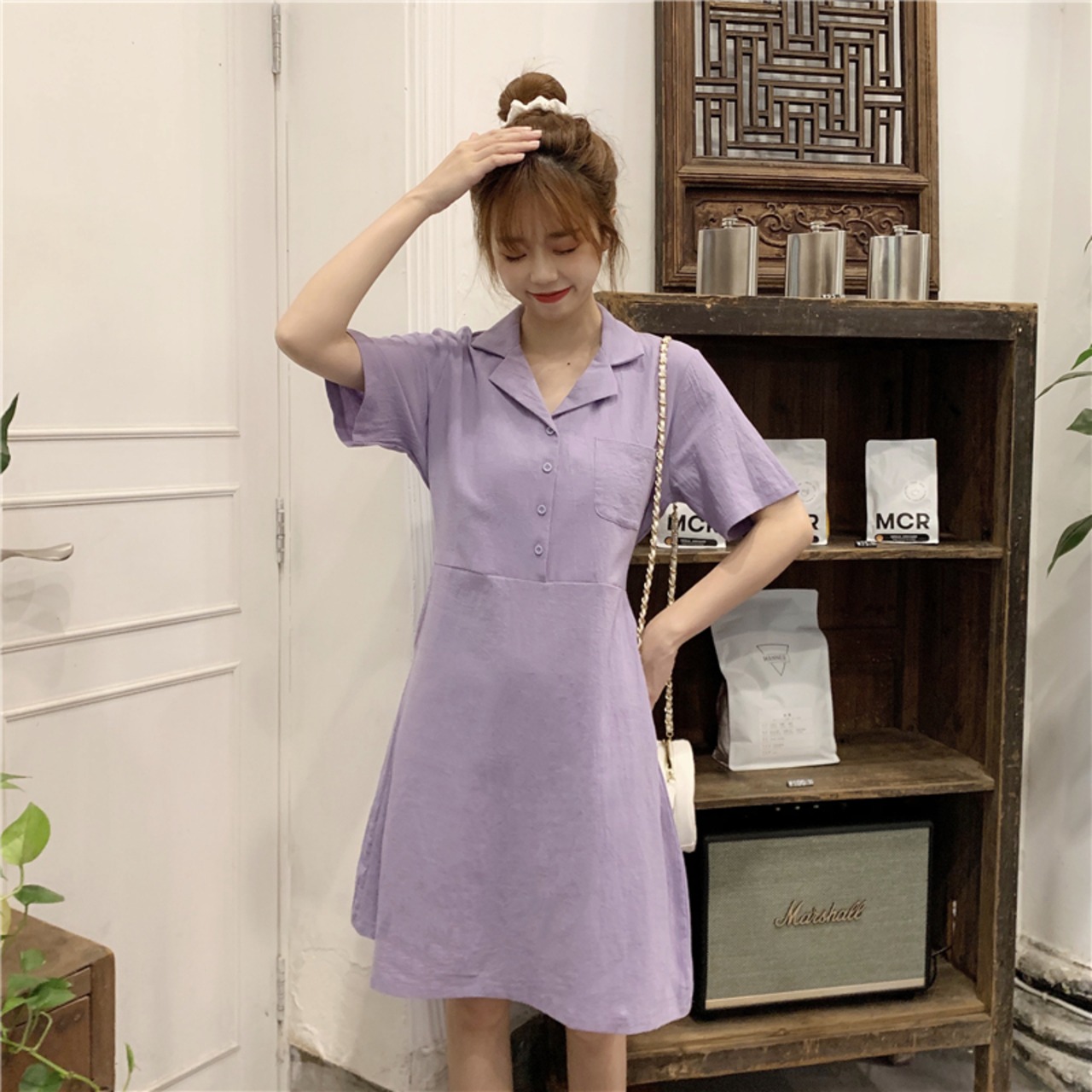 半袖スーツ襟ワンピース スーツ襟 半袖 膝丈 無地 シンプル レトロ デート お出かけ 通勤 OL MH1853
