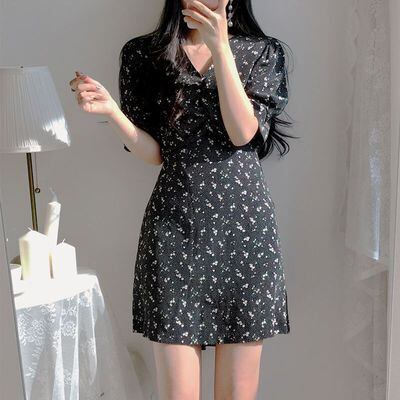 Vネックシフォンワンピース ミニ丈 半袖 Vネック シフォン 通勤 OL オフィス デート お呼ばれ 記念日 MH1859