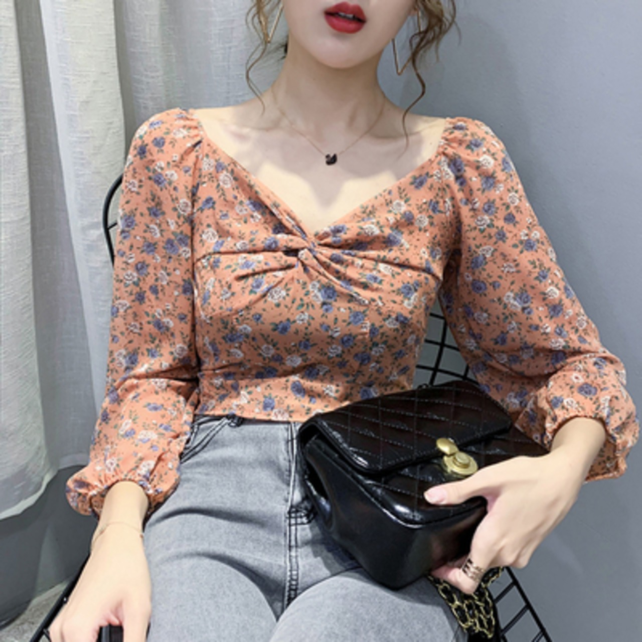 Vネック花柄ブラウス 花柄 Vネック ブラウス 通勤 オフィス OL ママコーデ デート お出かけ MH1887