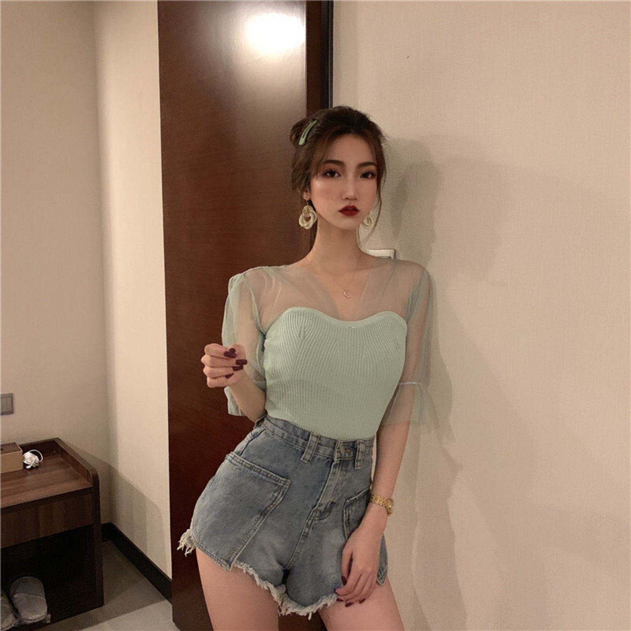 Vネックシースルーシャツ シースルー セクシー 大人かわいい 夏 通勤 OL オフィス ママコーデ デート お出かけ MH1895