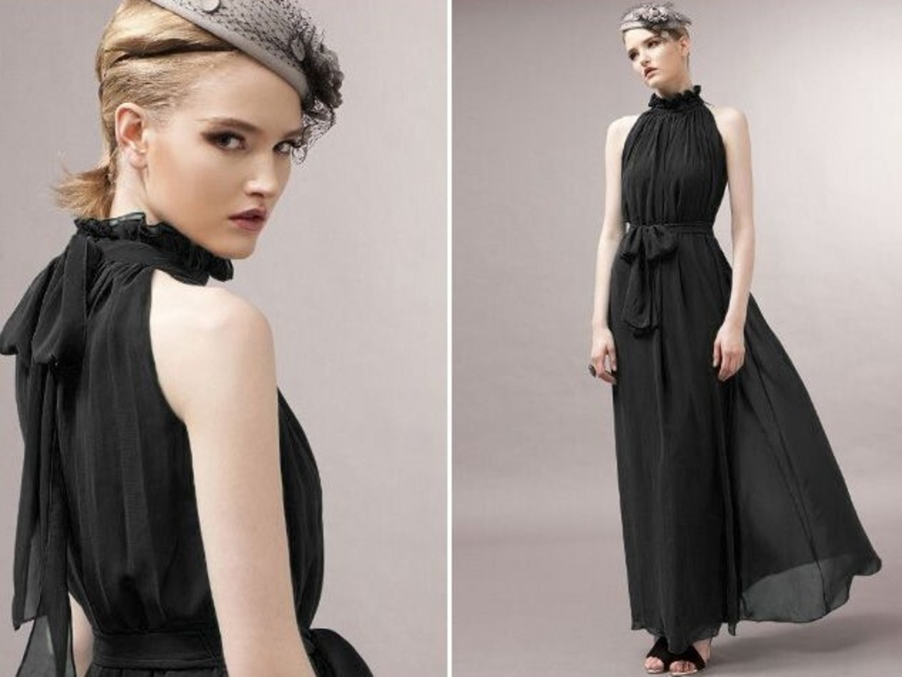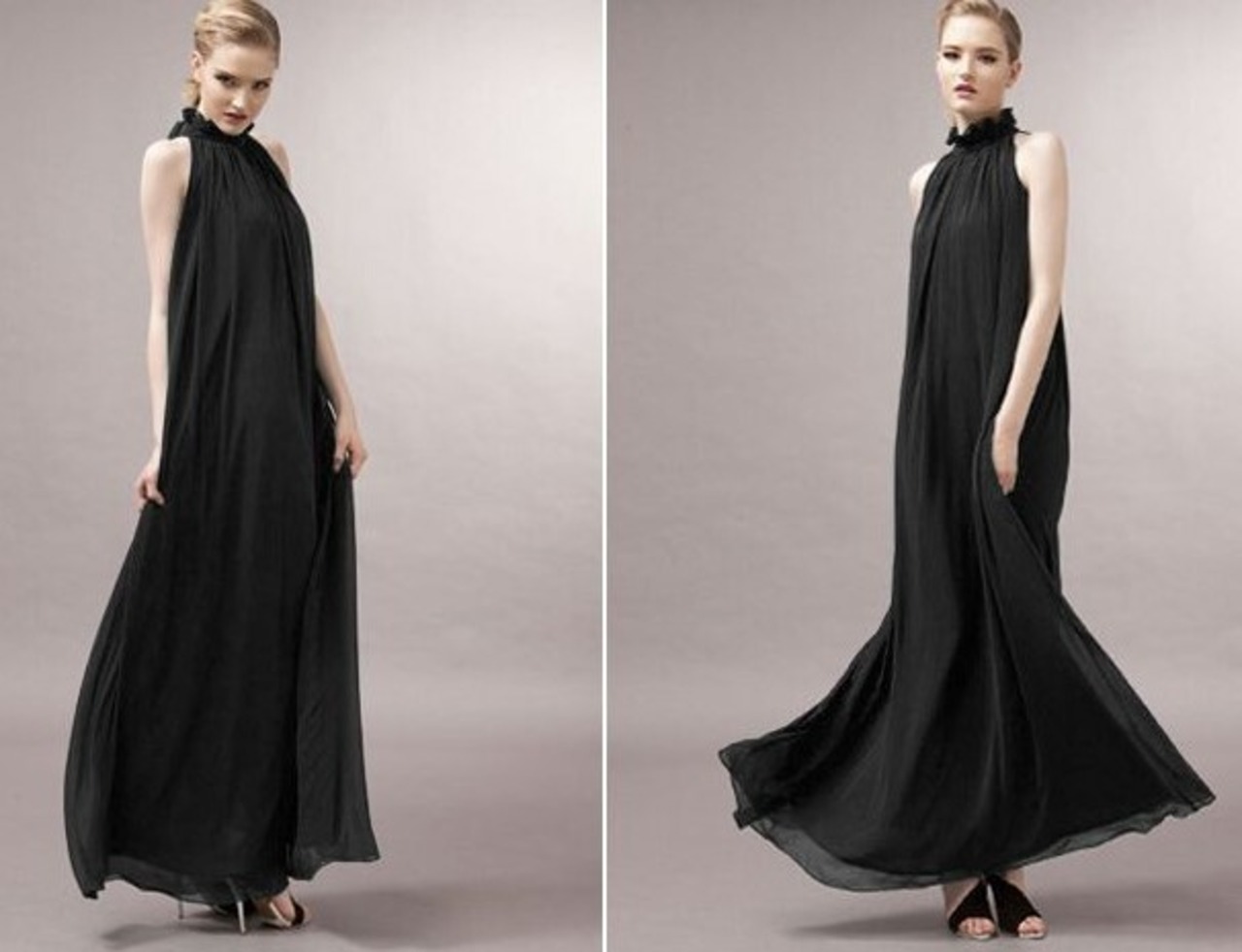 ワンピース ドレス シフォンワンピ レディース 春夏 ロング丈 パーティー 結婚式 二次会 お呼ばれ ハイネック ノースリーブ エレガント ブラック ab1698