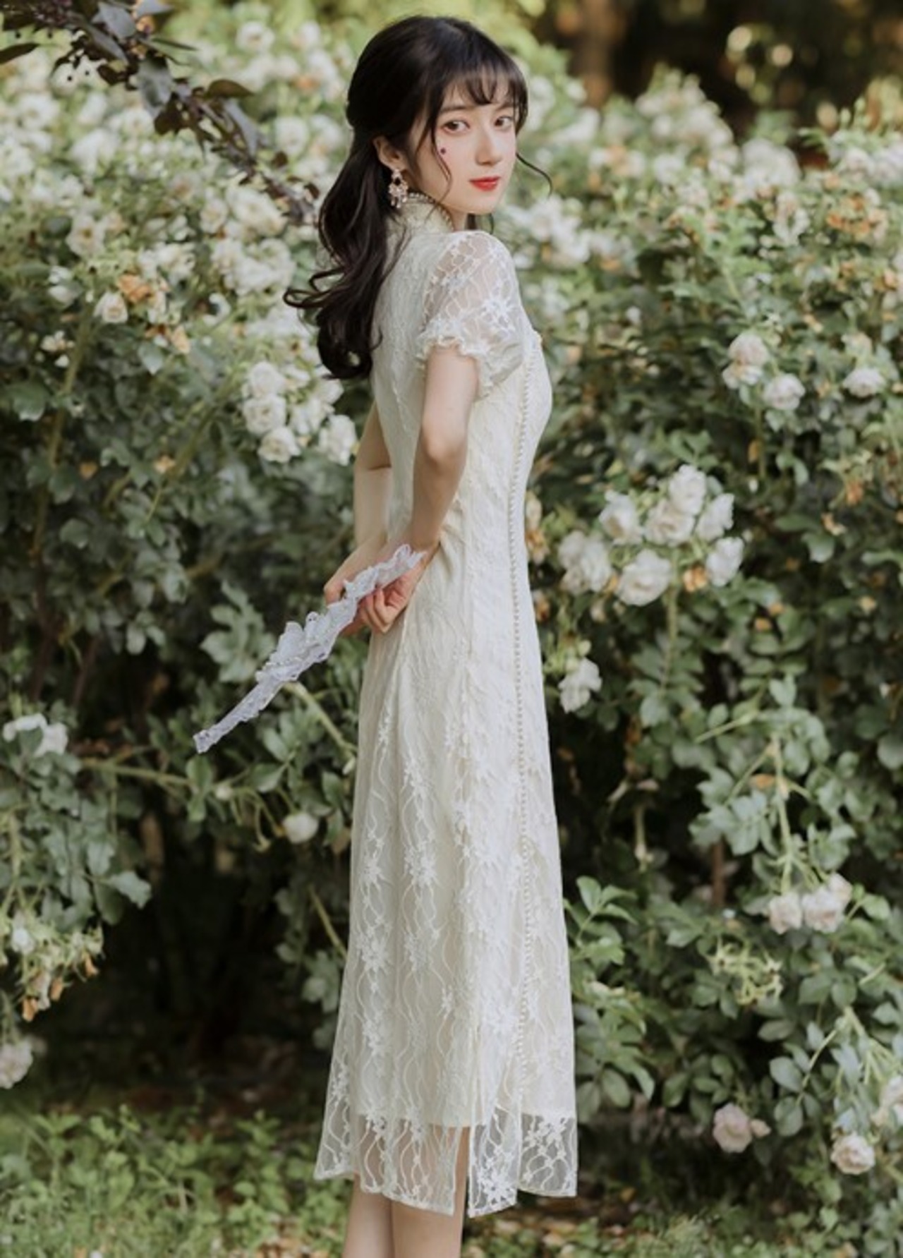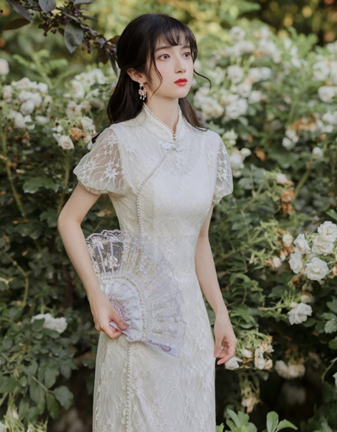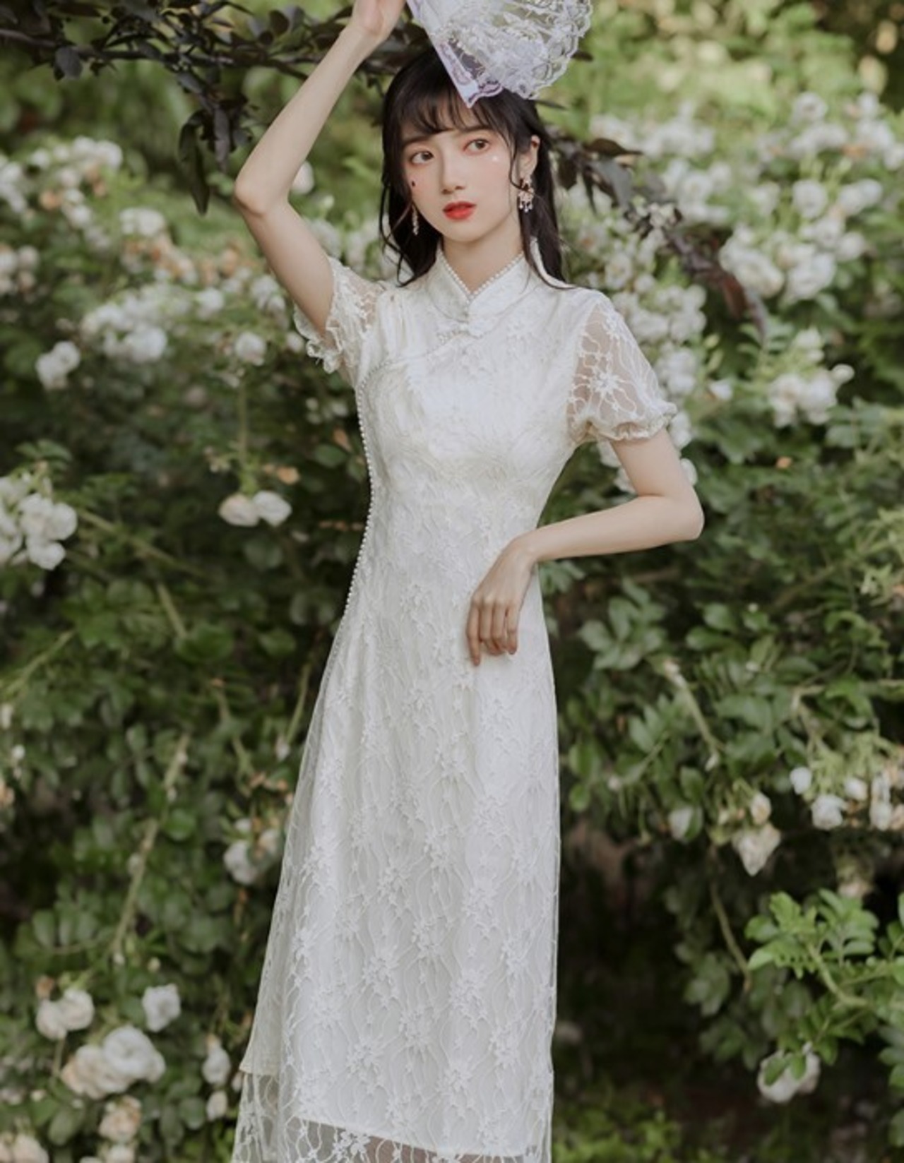 チャイナドレス ドレス レディース 春夏 ロング丈 レース 半袖 結婚式 パーティー 二次会 お呼ばれ ab1704