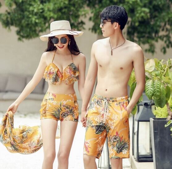 水着 スリーピース レディース ビキニ 3点セット パレオ ボタニカル セクシー フリル 体型カバー イエロー ab1708