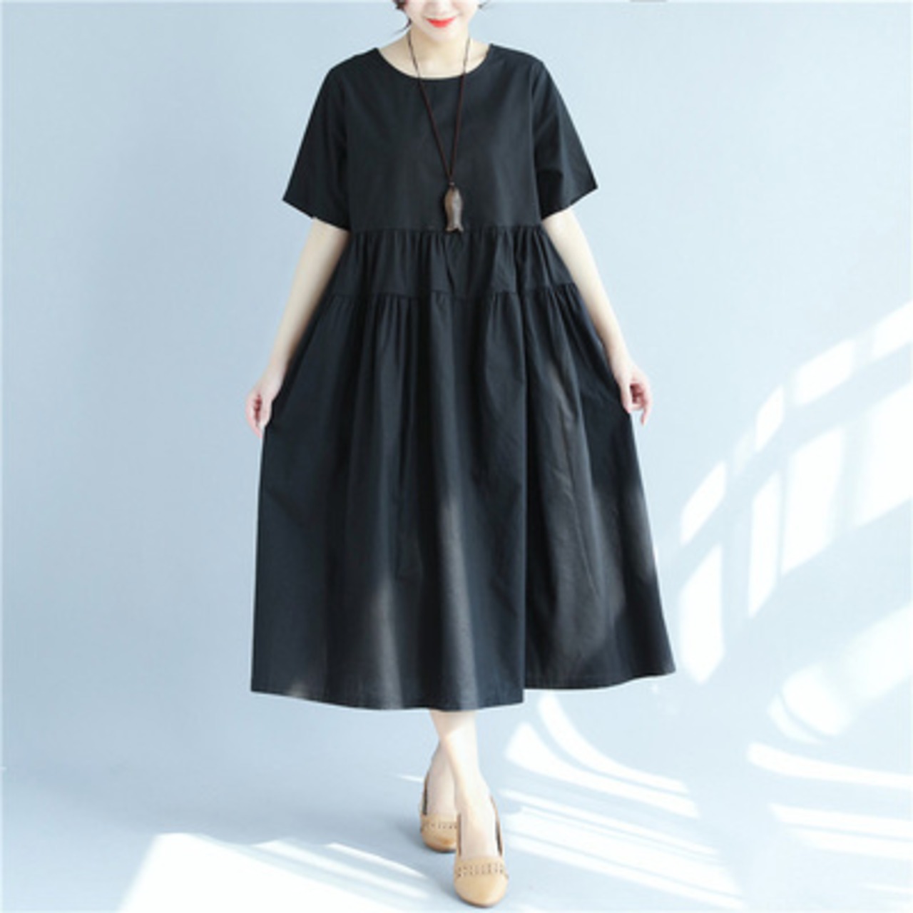 ワンピース ミモレ丈 半袖 ゆったり 大きいサイズ 体型カバー ルームウェア ママコーデ 夏 デート お出かけ MH1950