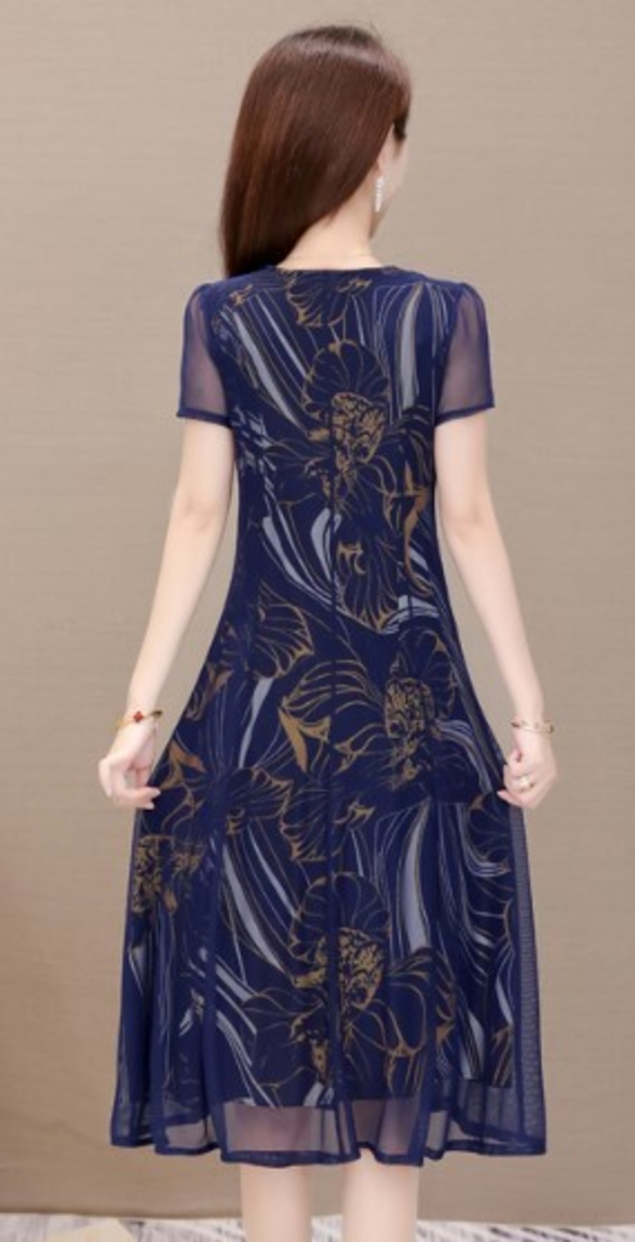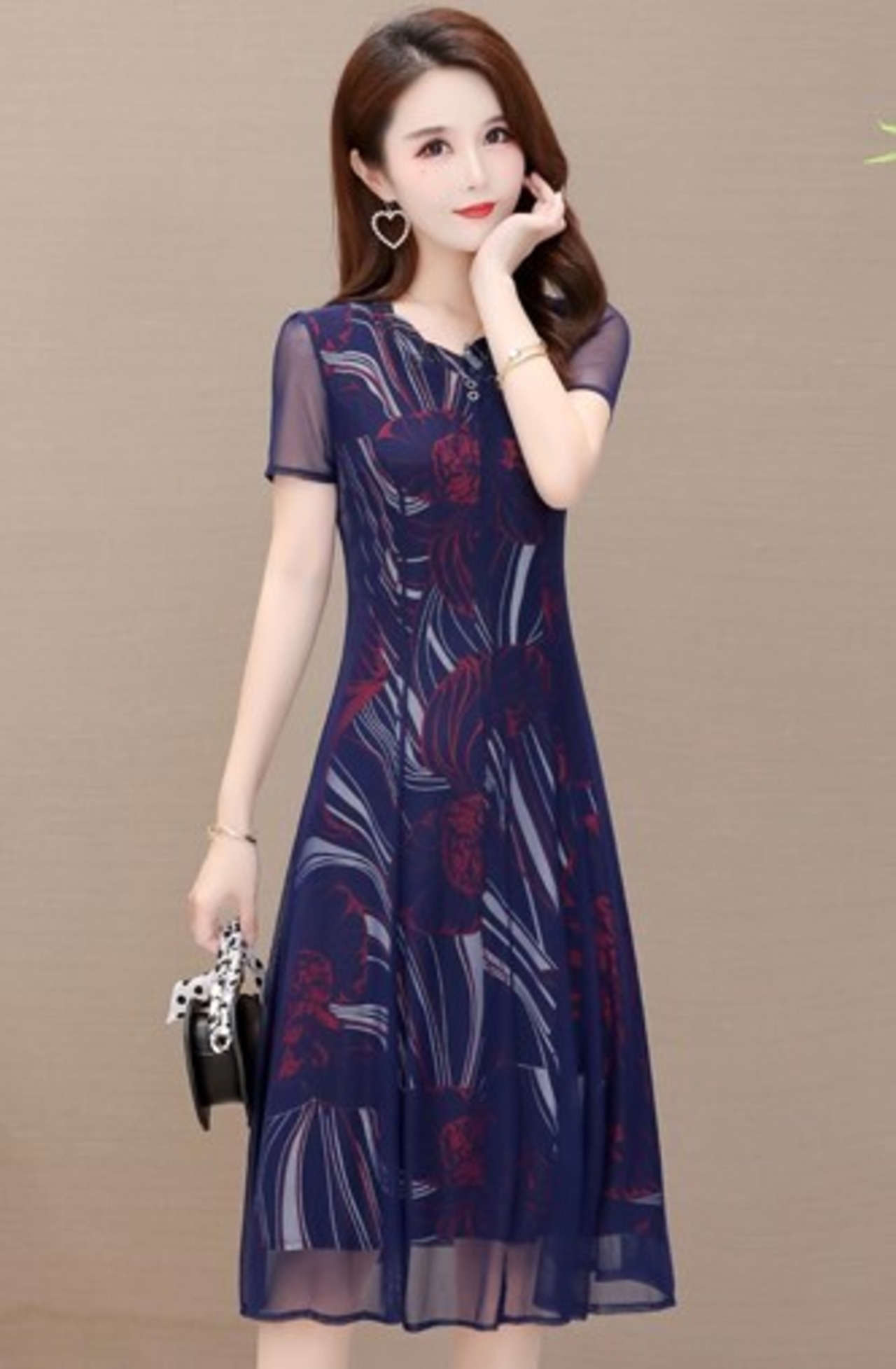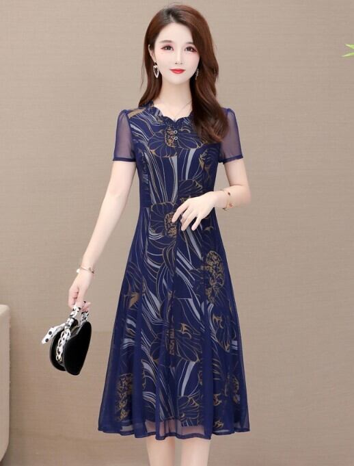 ワンピース レディース 大きいサイズ ひざ丈 メッシュ フラワー フリル 透け感 春夏 シック ab1728