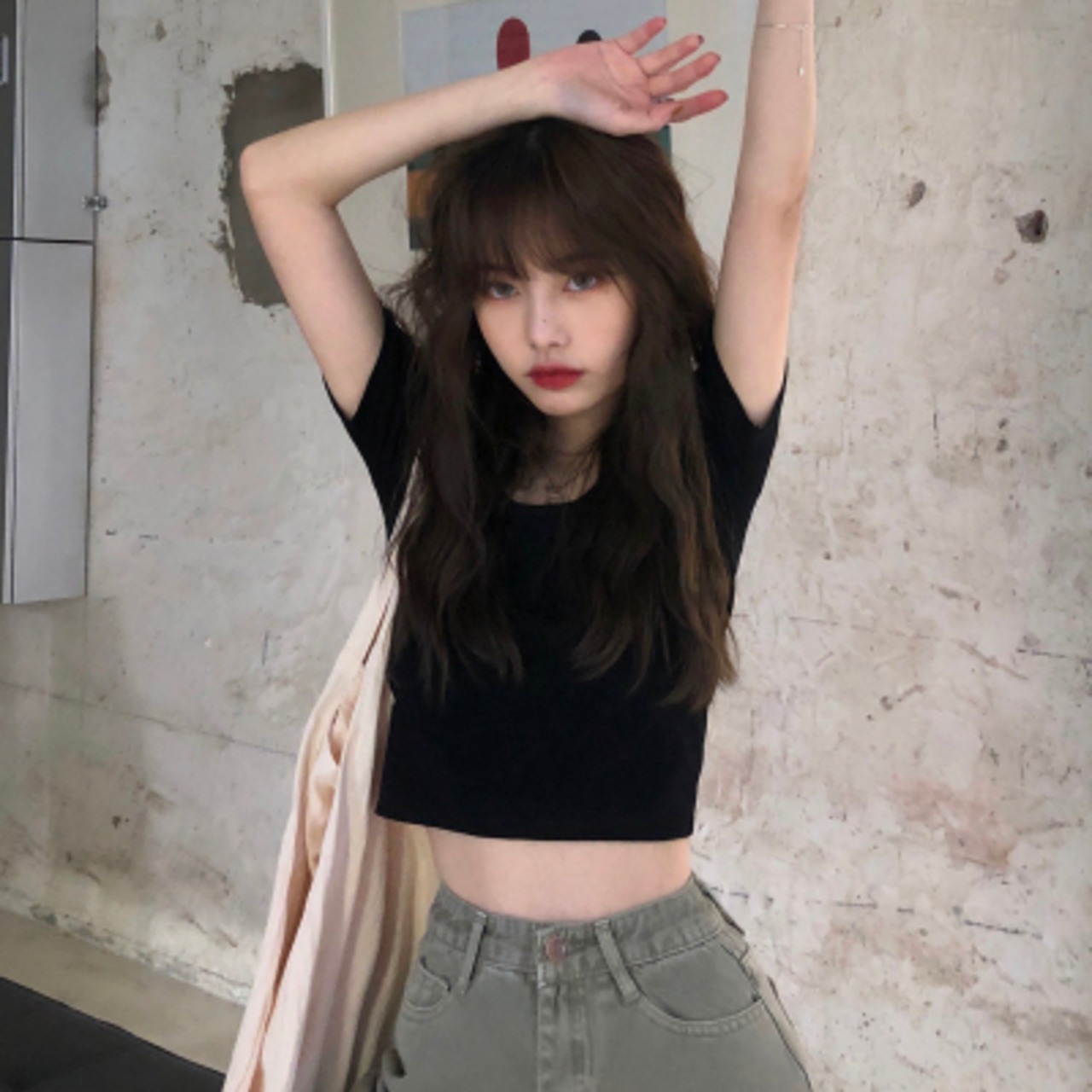 Tシャツ 半袖 トップス ショート丈 シンプル 無地 ラウンドネック 夏 デート お出かけ ルームウェア MH1973