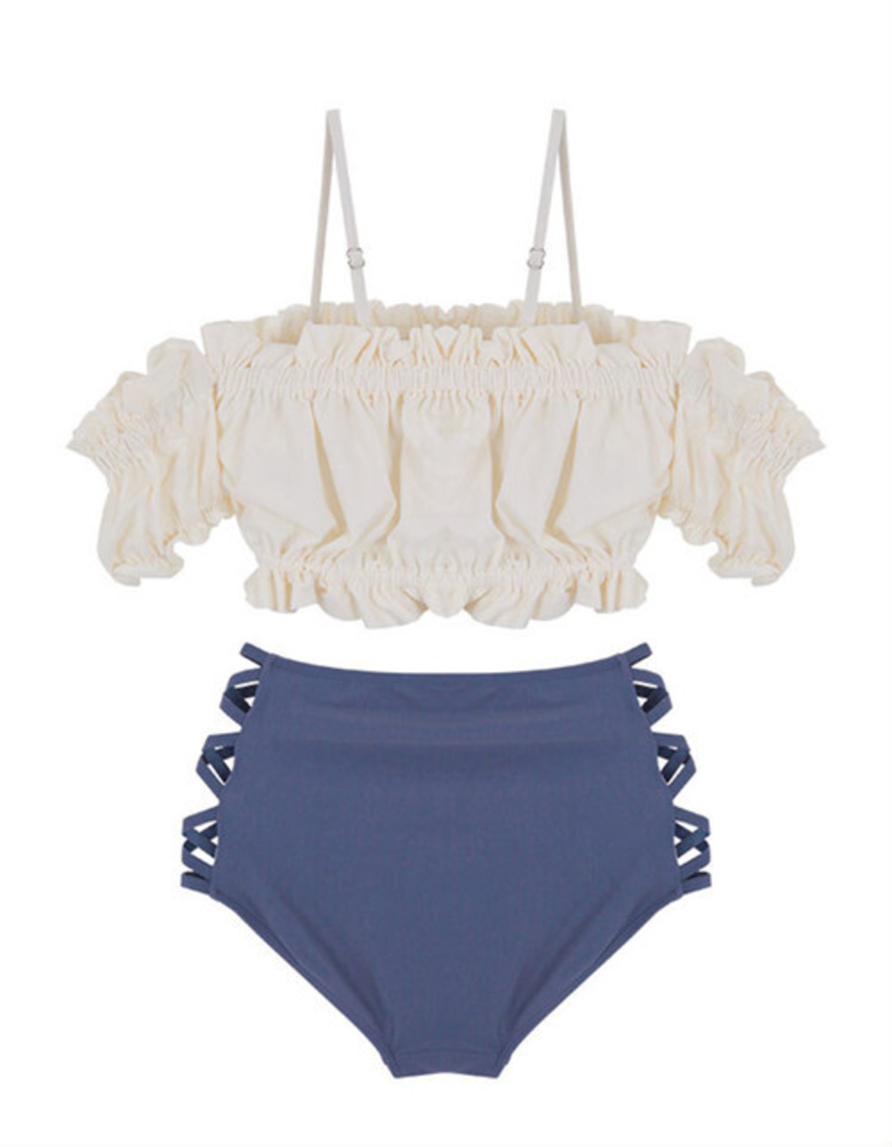 水着 オフショルダー フリル 編み上げ ビキニ 体型カバー セクシー ママ水着 海 プール ビーチ MH2003