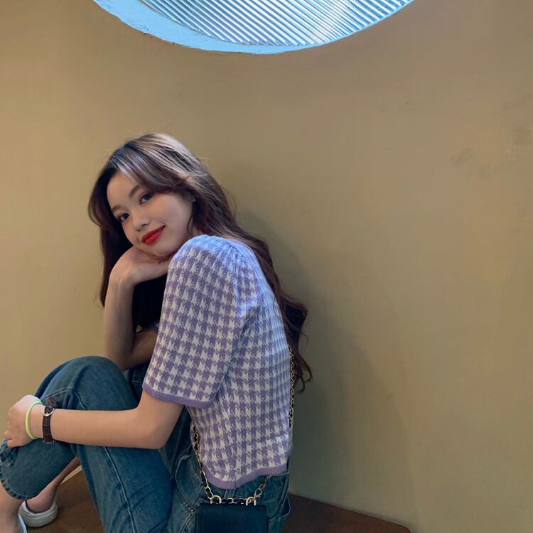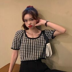Tシャツ 半袖 トップス 千鳥格子 ママコーデ 通勤 OL オフィスコーデ デート お出かけ MH2007
