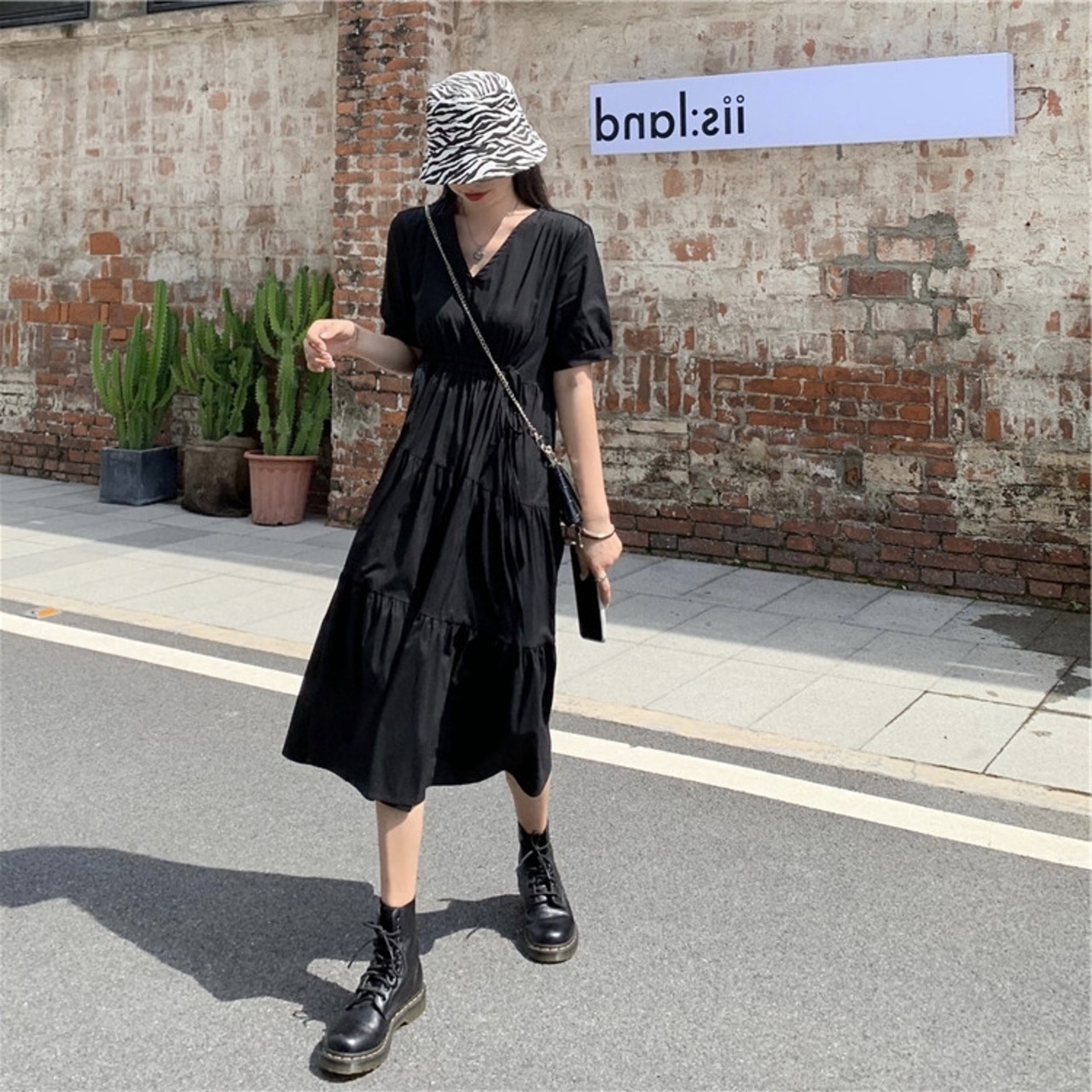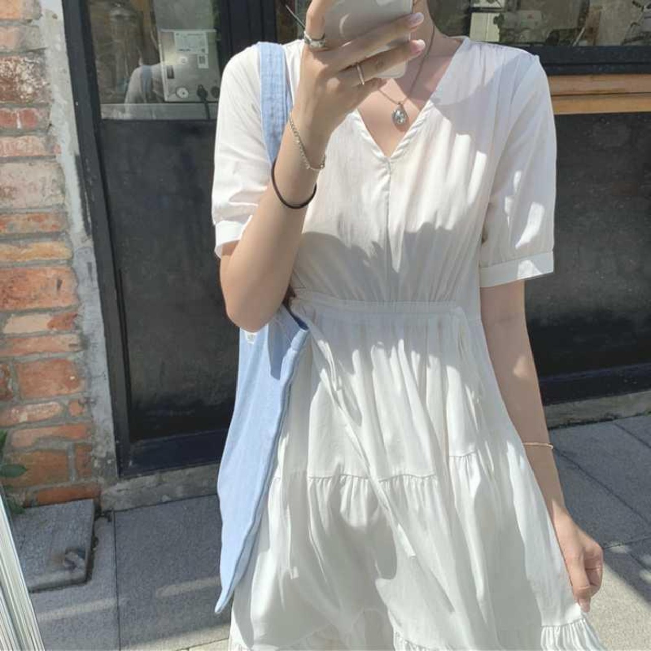 ワンピース Vネック ミモレ丈 きれいめ 無地 シンプル ママコーデ 通勤 デート 夏 MH2015