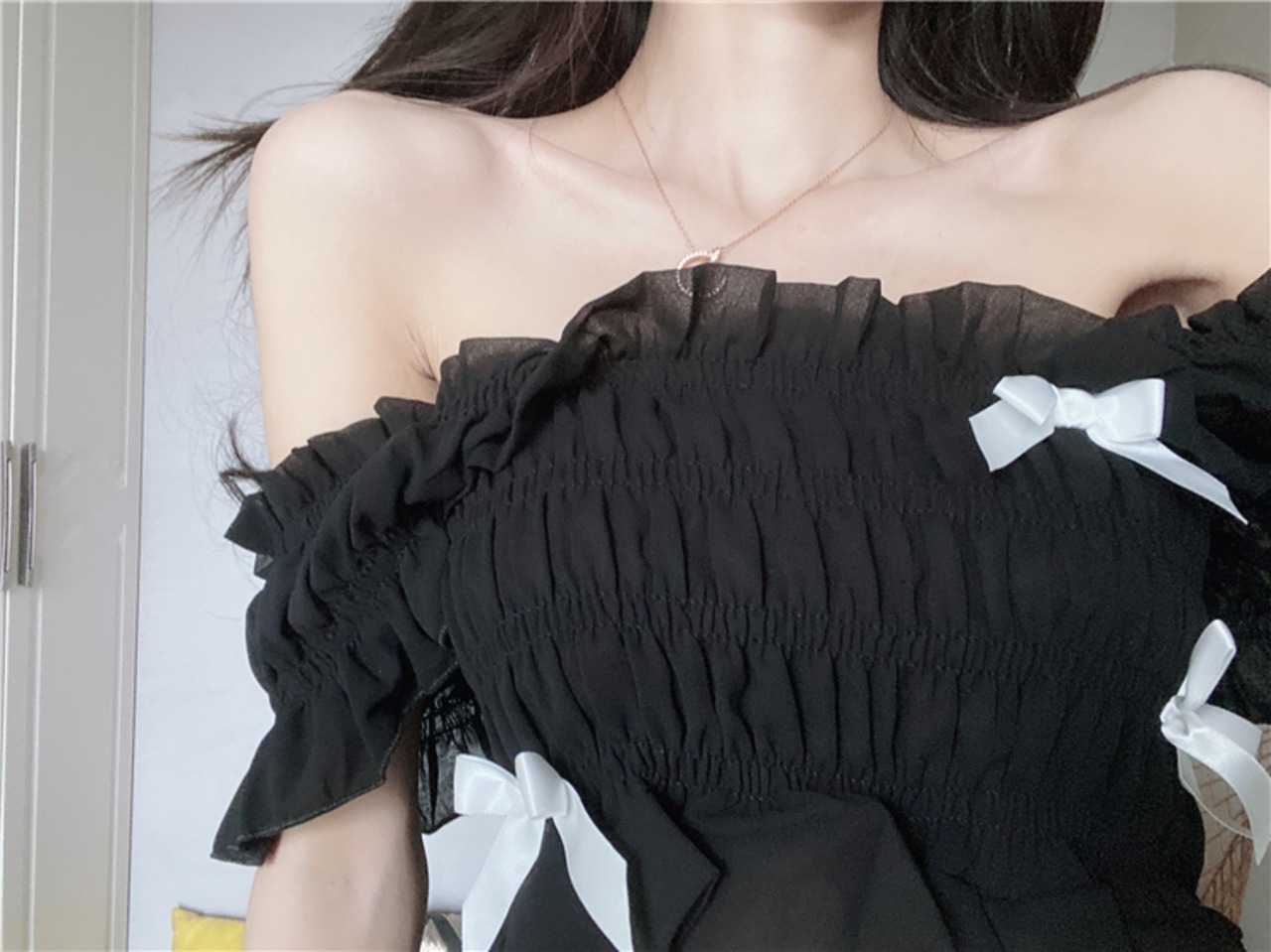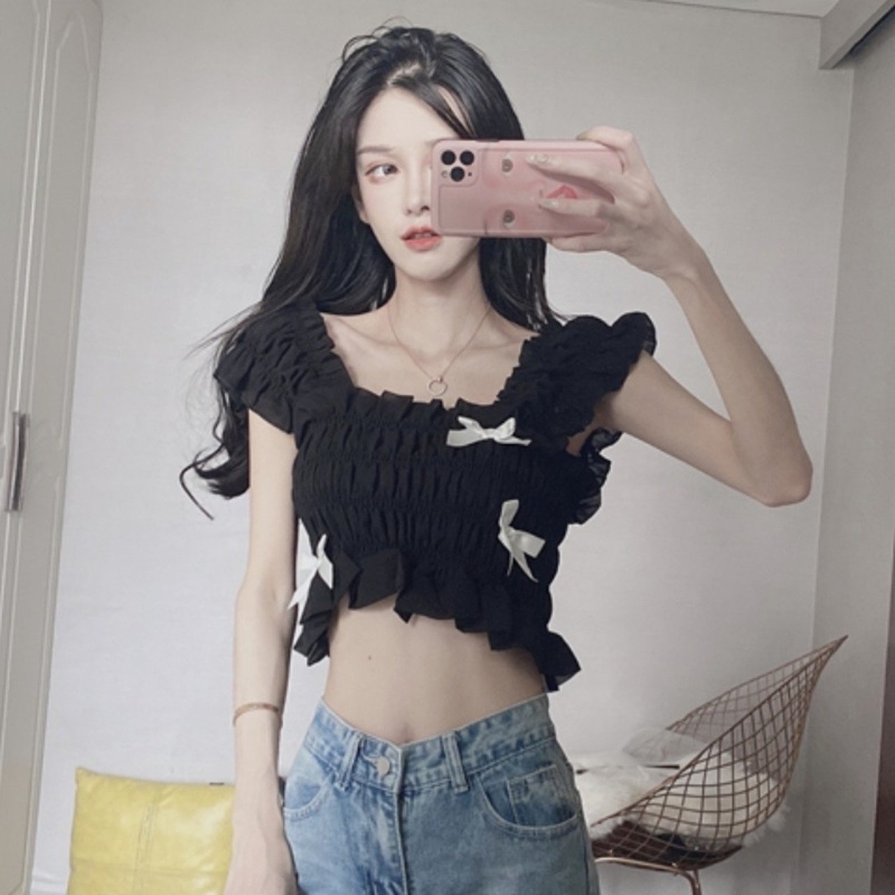 ブラウス ミニ丈 オフショルダー オフショル トップス リボン 半袖 セクシー 夏 デート お出かけ MH2021
