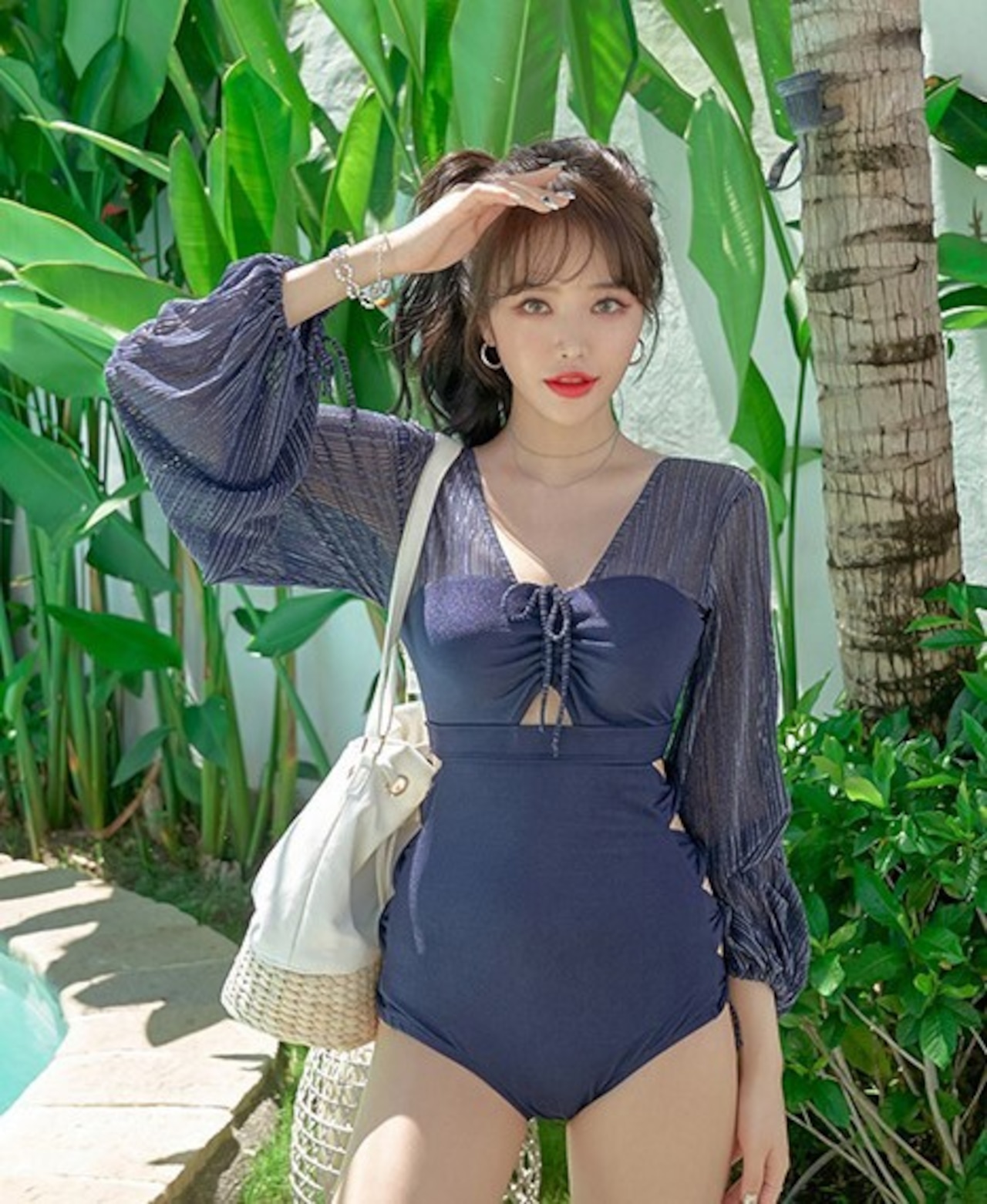 水着 ワンピース水着 ビーチ リゾート 長袖 体型カバー Vバック ラメ 異素材 ガーリー ママ水着 ab1759