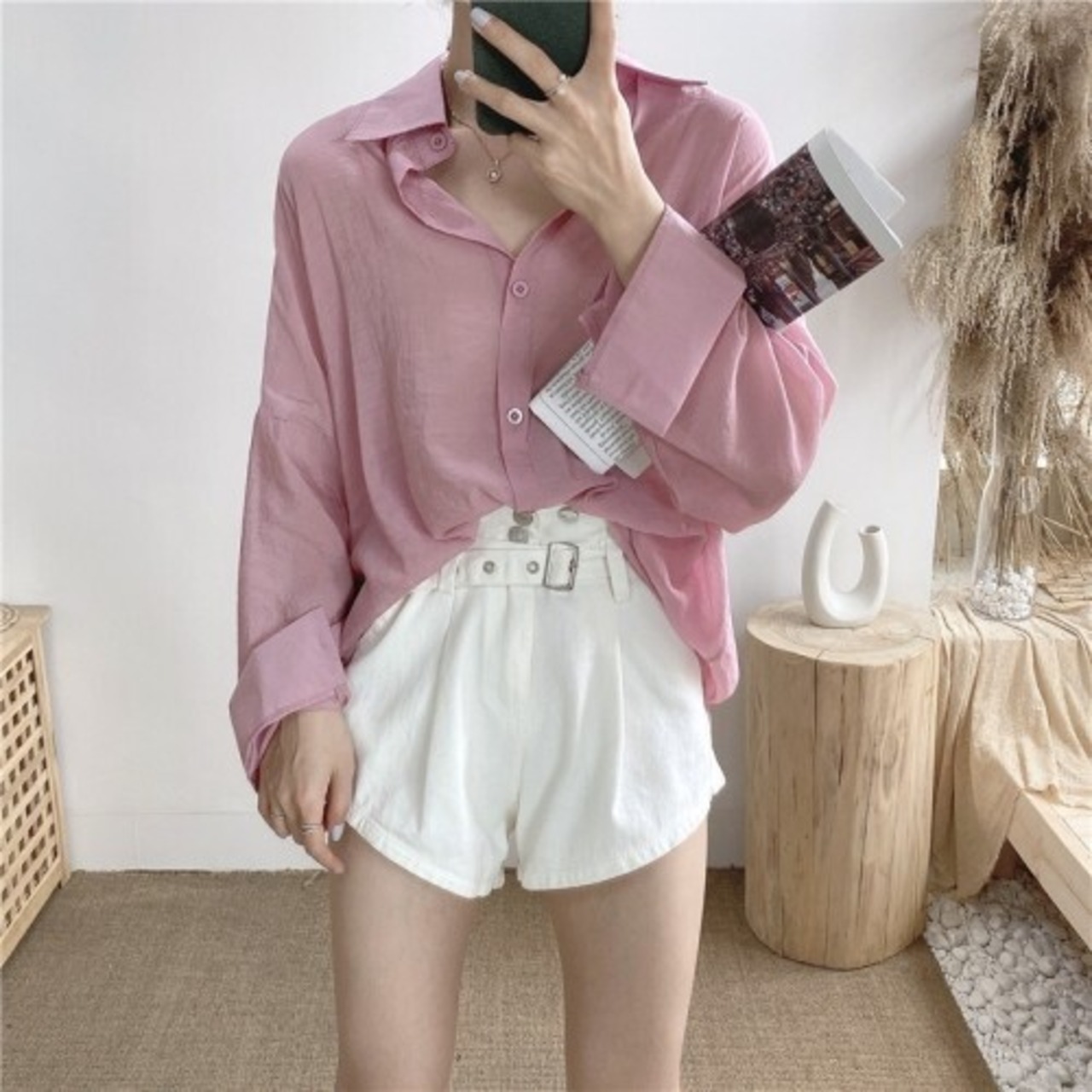 シャツ 長袖 トップス 透け感 カラバリ豊富 夏 ママコーデ 通勤 OL オフィス デート お出かけ MH2080