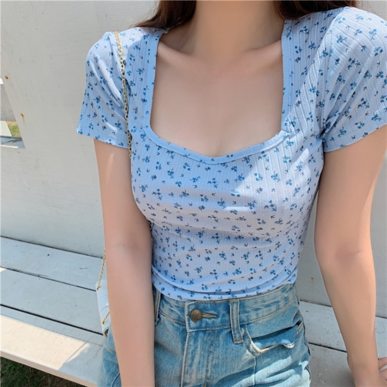 Tシャツ 花柄 トップス 半袖 スクエアカラー 夏 通勤 OL ママコーデ デート お出かけ MH2096