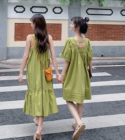 ワンピース 春夏 ノースリーブ ロング丈 レディース Aライン ふんわり ゆったり ガーリー フレアスカート プチプラ ab1763