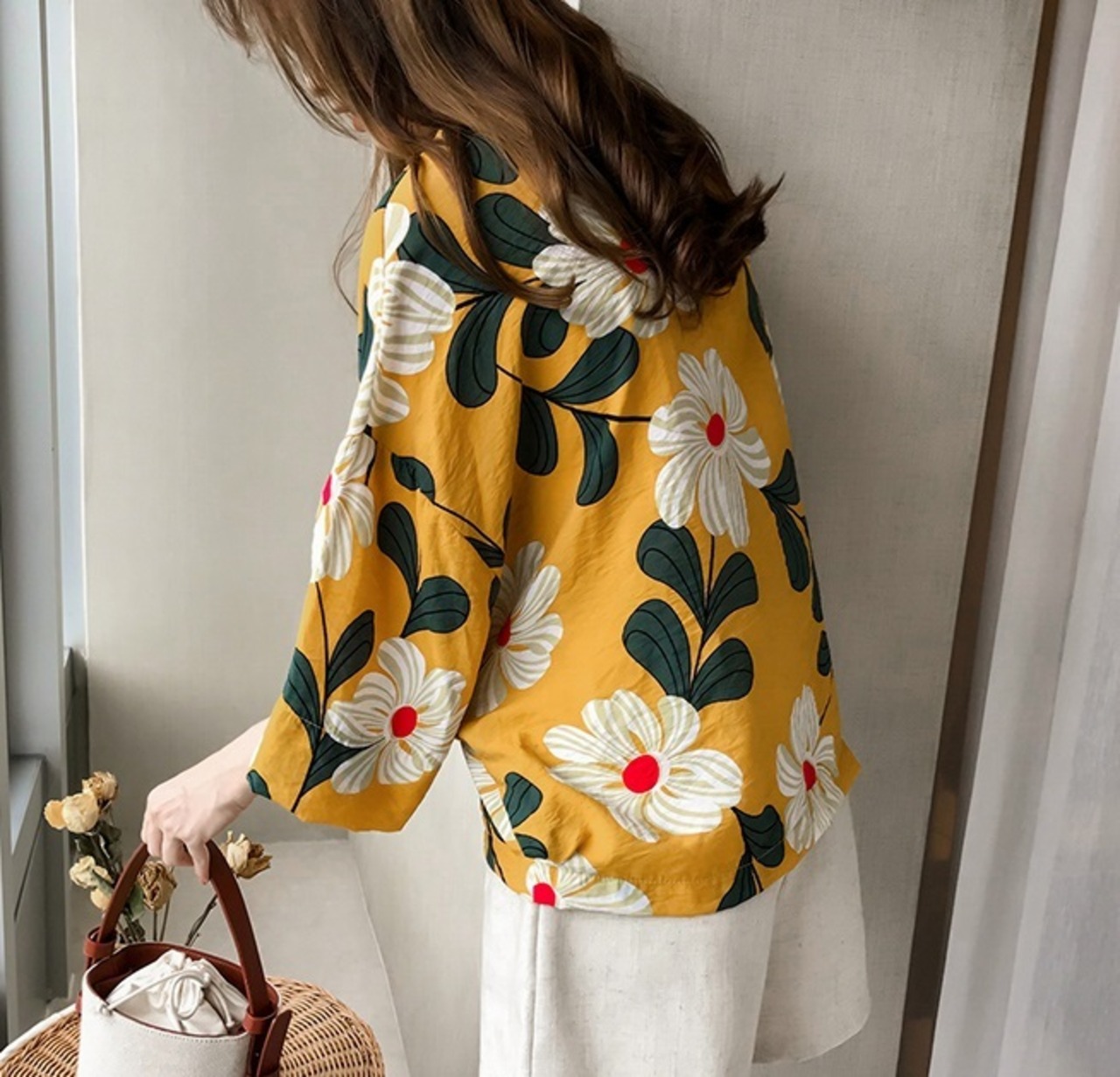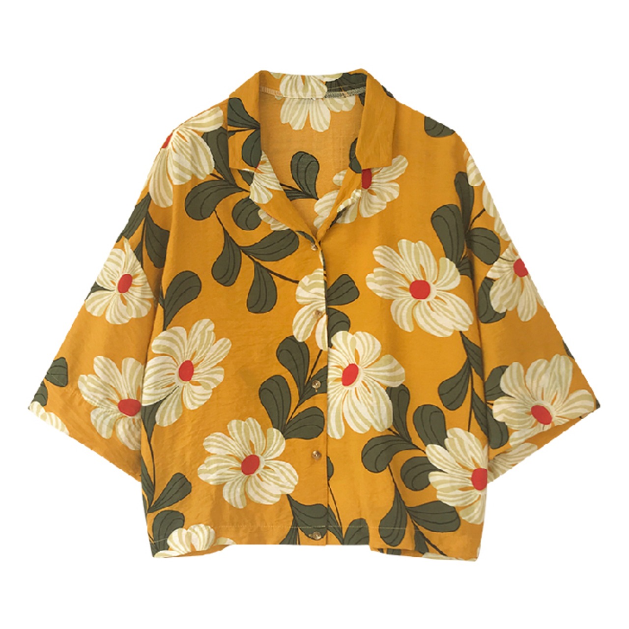 オープンカラーシャツ ブラウス 半袖 トップス 花柄 レトロ ママコーデ ゆったり 大きいサイズ デート お出かけ MH2111