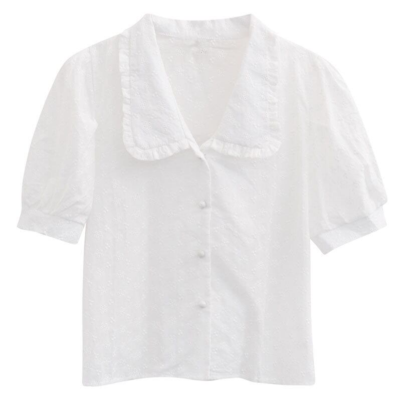 ブラウス 丸襟 パフスリーブ 半袖 トップス レトロ フェミニン ガーリー ママコーデ 通勤 デート お出かけ MH2115