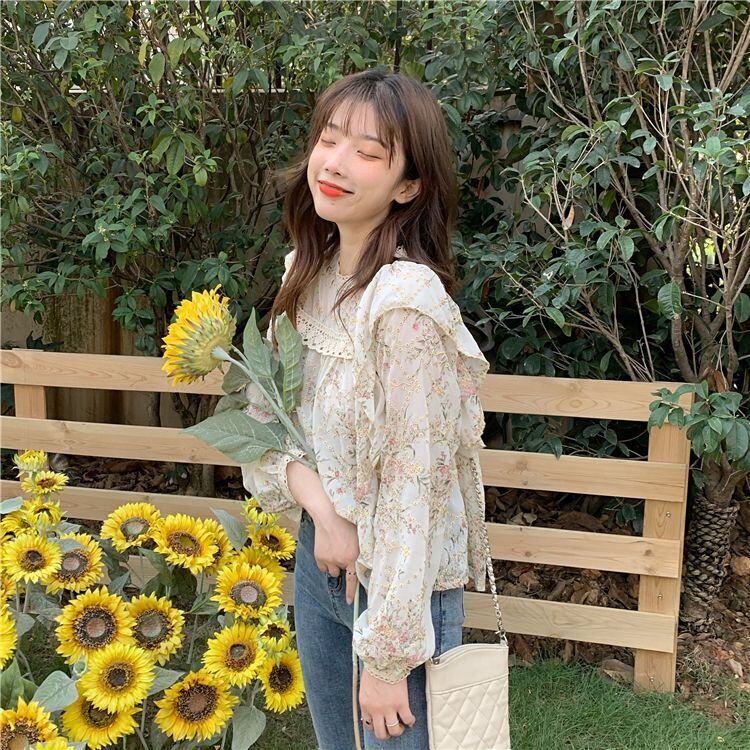 ブラウス トップス フリル 花柄 レトロ フェミニン ガーリー ママコーデ 通勤 デート お出かけ MH2118