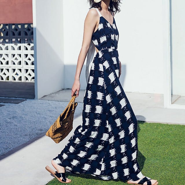 ワンピース マキシ丈 キャミワンピ チェック柄 バックコンシャス セクシー 夏 ママコーデ リゾート デート お出かけ MH2148