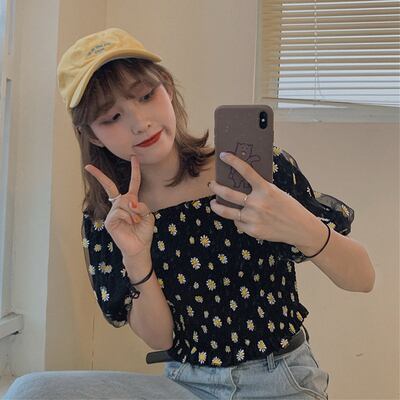 ブラウス トップス パフスリーブ 花柄 ショート丈 シャーリング オフショル 夏 ママコーデ デート お出かけ MH2155