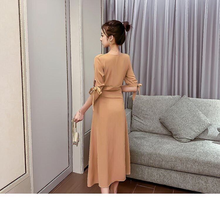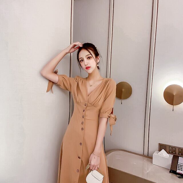 ワンピース Vネック ロング丈 シャツワンピース 半袖 無地 大人可愛い ママコーデ 通勤 デート お出かけ 夏 MH2167